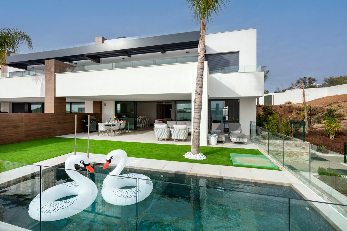 Welcome to our stunning vacation home in the enchanting Spanish village of Cabopino, Marbella. Enjoy a luxurious stay with 4 bedrooms, a stylish living room, new kitchen, and 3 bathrooms. Unwind in the front garden, backyard, or spacious rooftop terrace. There's even an office with four deluxe workstations in the basement. Within walking distance of the golf course, harbor, and beach of Cabopino. Book now and turn your dream vacation into a reality!