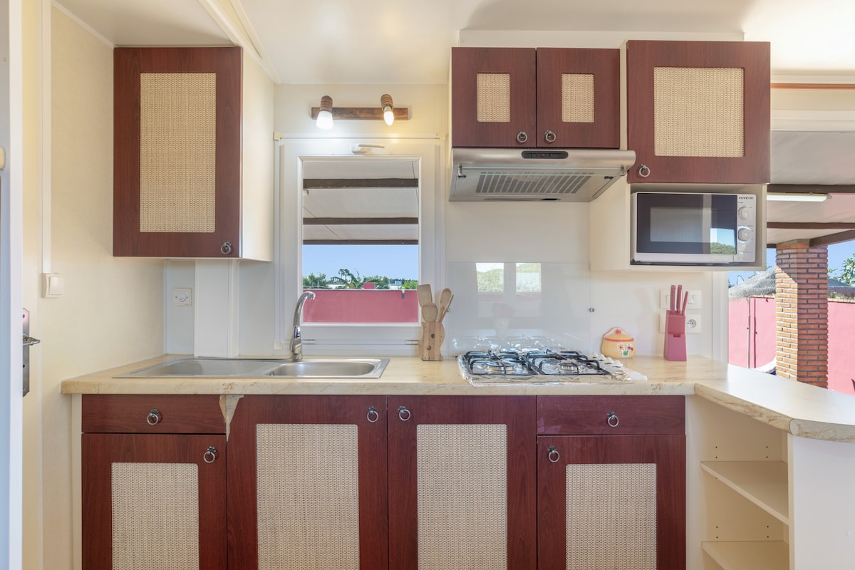 Cadiz'deki El Palmar'ın bozulmamış plajında güzel ahşap ev. Plaja 650 metre mesafededir. Ev iki yatak odası, oturma odası ve özel banyodan oluşmaktadır. Havuzlu bahçe, şezlong, şemsiye ve duş, yemek pişirme ve mutfak gereçleri için iki ateşi olan mutfak ve barbekü/çardak alanı gibi ortak alanlara sahiptir. Arsa, konaklamayı kolaylaştırmak için bunlardan birinde kalan toplam 3 ahşap bungalovu barındırır.