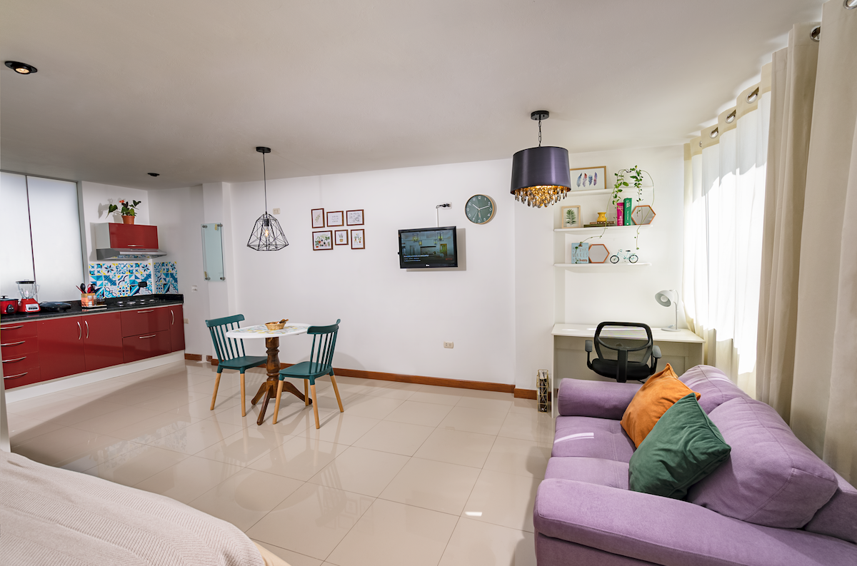 Plaza de Armas ve Alışveriş Merkezlerine 5 dakika mesafede bulunan modern stüdyo dairemizde maksimum hijyen. Cajamarca'nın en iyi kentsel yerleşim bölgesinde, merkezi ve güvenli bir konumda, konforlu bir konaklama yaşamak için ihtiyacınız olan her şeye sahiptir. Tüm musluklarda sıcak su, tam donanımlı mutfak, gerekli tüm aletler ve mutfak eşyaları, yüksek hızlı kablosuz internet erişimi ve 55" TV.