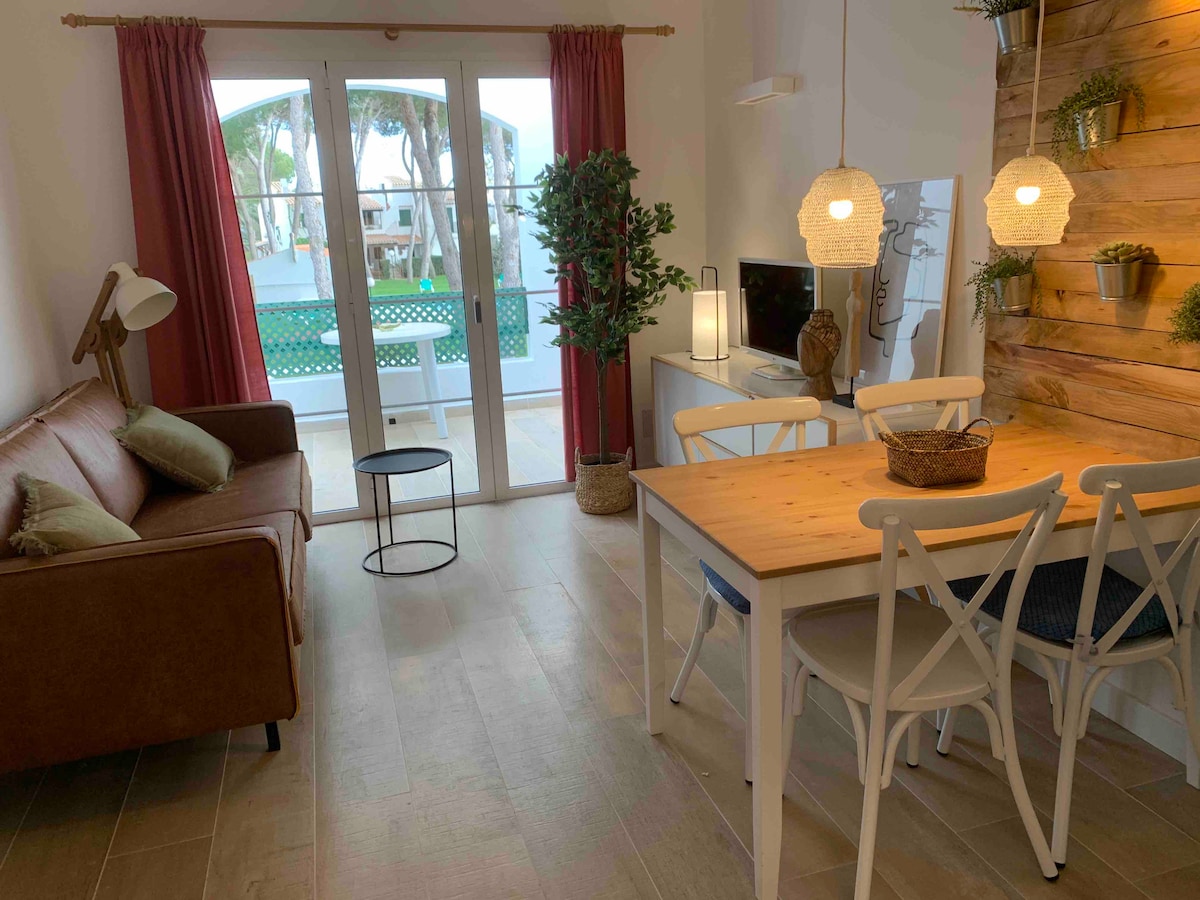 Plaja sadece 200 metre mesafede, barbekü olan geniş teraslı daire. 2 havuz ve raket tenisi kortu. Deniz ve dağ manzarası. Çift kişilik yatak odası, oturma odası, mutfak ve banyodan oluşmaktadır. Çok sakin bir bölge, yakınında hizmetler (süpermarket, alışveriş alanı, golf... özel otoparkı var. Harika bir yazın tadını çıkarabilir, Cala Pregonda, Cavalleria vb. gibi güzel koyları ziyaret edebilirsiniz. Merkezde olması adayı keşfetmek için idealdir. Daire tamamen donanımlıdır.