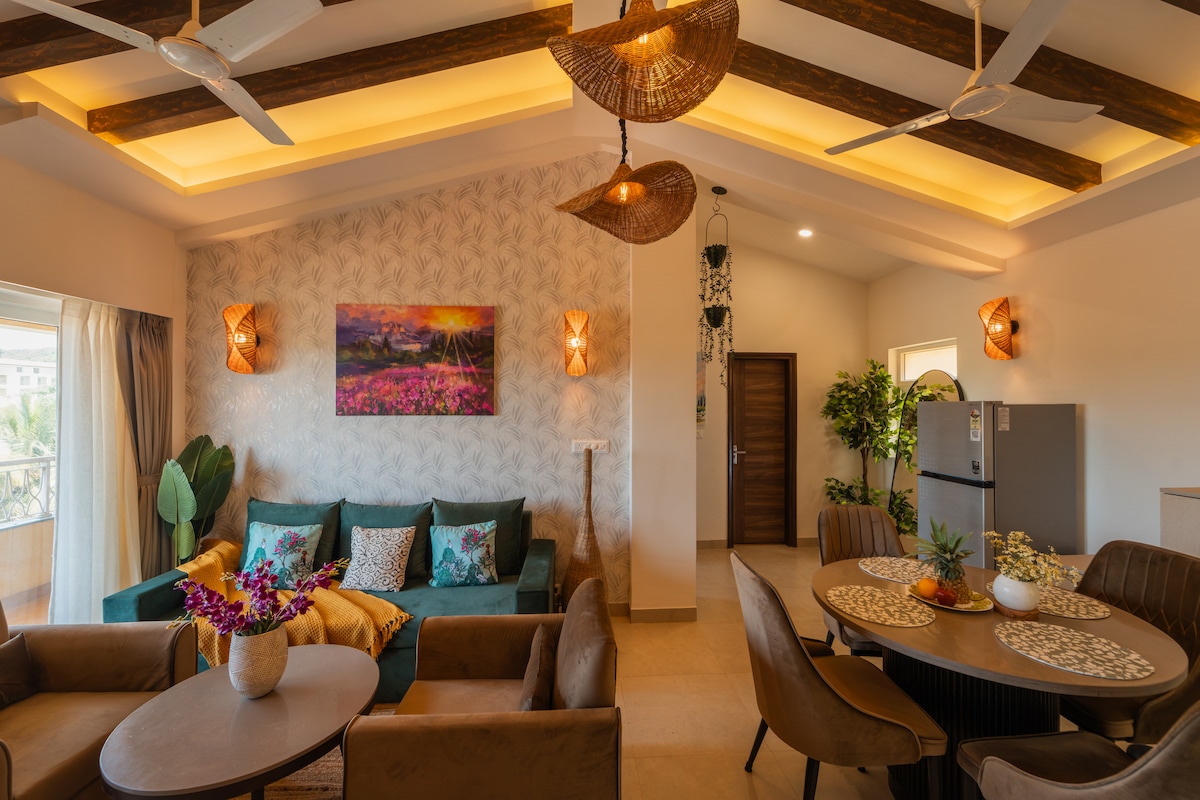 Modern Boho Apartmanı | Kuzey Goa Plajlarına Dakikalar Mesafesinde. Çiftler, arkadaşlar veya küçük aileler için mükemmel, konforlu, tamamen mobilyalı 1BHK inziva yeri. Highlights: - Sıcak bir havası olan şık boho iç mekanlar - Konfor için yatak odası ve oturma odasında klima. - Akıllı TV + yüksek hızlı kablosuz internet bağlantısı. - RO suyu, ocak, buzdolabı ve çamaşır makinesi ile donatılmış mutfak. - Ortak yüzme havuzu (09.00-18.00 | mayo zorunludur). - Ücretli tesis olarak kullanılabilen tesis içi spor salonu. - Gönül rahatlığı için 7/24 güvenlik - Ücretsiz park yeri