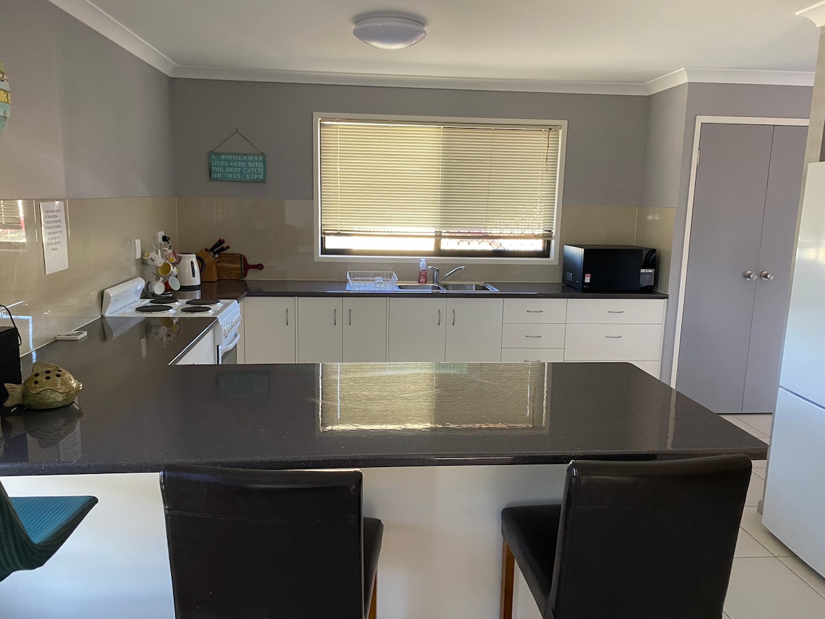 Queenslander katlı evimiz Gladstone'un göbeğinde bulunmaktadır, arkası çalılık alandır ve mağazalara 5 dakikadan kısa mesafededir. Üst katta yaşıyoruz, alt yarısı müstakil biriminizdir - mutfak/salon, ana yatak odası, ebeveyn banyosu ve "Plaj Odası" (2. yatak odası). Lütfen 4 odanın hepsinin bitişik olduğunu ve kullanım sırasında dışarıdan başka ebeveyn banyosunun etrafında dahili yürüyüş yolu olmadığını unutmayın. Plaj odası çalılık manzarasına sahiptir.