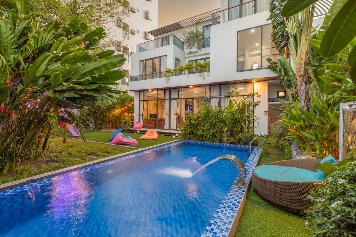 Yeni inşa edilmiş villa/6 yatak odası/Mike Plajı'na 6 dakika yürüme mesafesinde/Havaalanı 10 dakika/Koreli ev sahibi/Ücretsiz havaalanı transferi/Danang'ın merkezinde