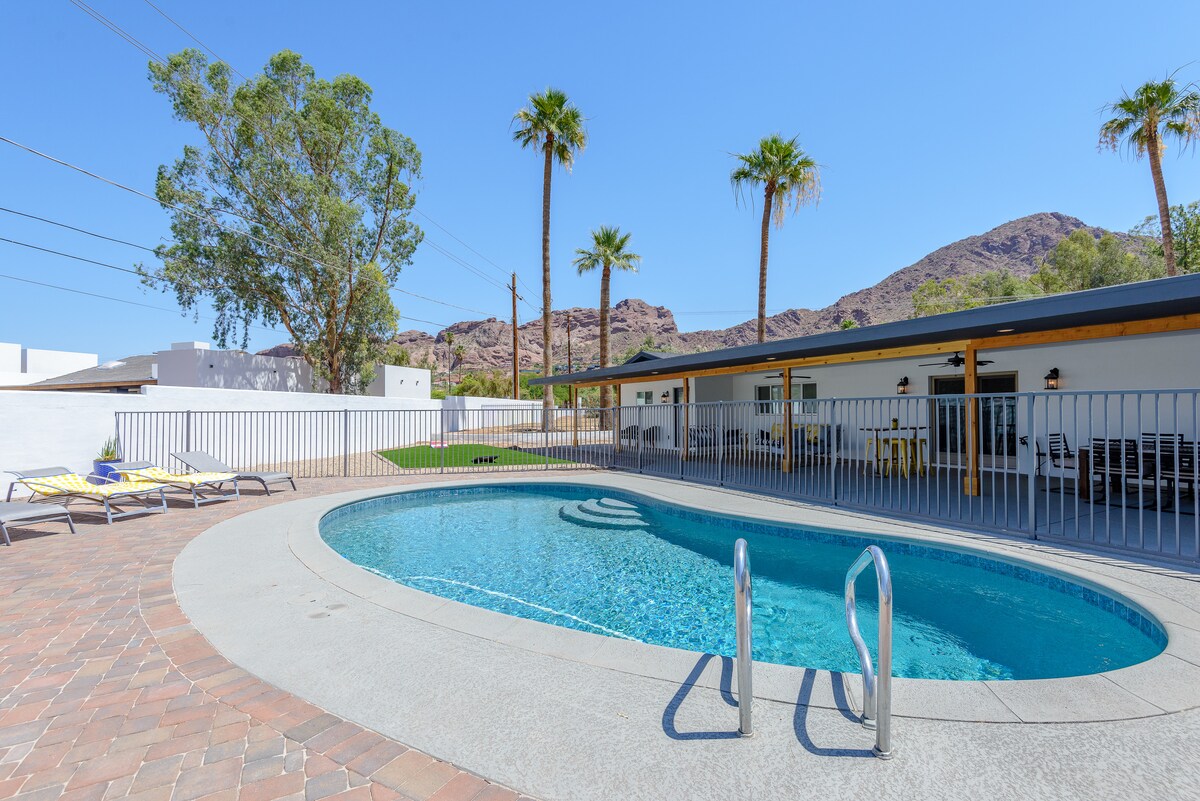 CAMELBACK MTN MANZARALARI *16 kişilik geniş, kapalı havuz (isteğe bağlı ısıtma 40 $/gün) * Büyük özel bahçeli büyük ev, tüm gruplar (bekarlığa veda partileri) ve aile dostu *4000 ft² TEK KAT *3000 metrekarelik bahçe * SCOTTSDALE TARİHİ ŞEHRİNE 3 dakika. * Phoenix Sky Harbor Havaalanı'na 8 dakika. * Spor alanlarına, golf, yürüyüş parkurlarına, tatil köylerine, spalara, restoranlara, barlara, mağazalara ve eğlence mekanlarına yakındır. * Büyük yatak odaları, HAVUZ, gazlı barbekü * Bilardo masası, pinpon masası ve langırt. STR #2025-003134 Ruhsat No. 21308672