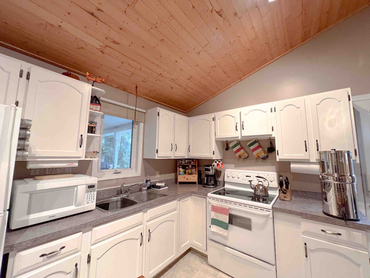 Tüm sezon kulübesi! Bu mülk, size muhteşem gün batımı manzaraları sunan sakin Torch gölüne bakıyor. Arka bahçeye ve ateş çukuruna (ateş odunu dahil) doğru bir yürüyüşle yükseltilmiş bungalov. Bu böcekler kötü olduğunda rahatça oturmak için odada gösterilir. Ocak, buzdolabı, mikrodalga fırın, tencere, tabak, çatal bıçak takımı ile tam donanımlı mutfak.