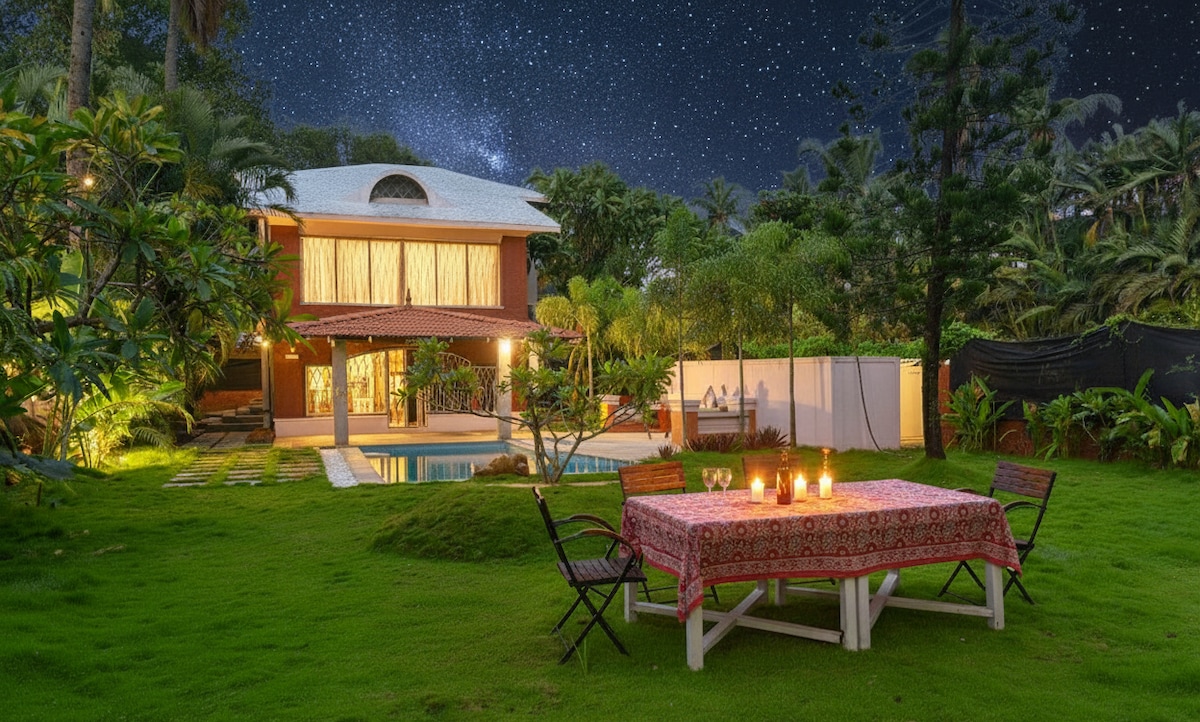 Lüks Kır Evi: Nirja}|Romantik Açık Hava Küveti|Goa
