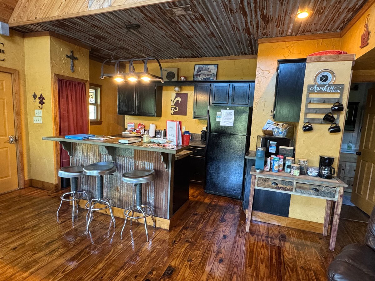 Yeni yenilenen kulübelerimiz, Bayou Pierre'de 30 dönümlük kapalı bir alanda, Los Angeles, Natchitoches şehir merkezine 10 dakika mesafededir. Sessiz, tenha ve güzeldir. Üst katta çift kişilik yataklı bir yatak odası, iki ikiz yataklı bir çatı katı alanı ve ayrıca alt katta bir yaşam alanı, mutfak ve banyo vardır. Gelip salıncaktaki arka verandada dinlenin. Uydu, kablosuz internet bağlantısı, temel mutfak malzemeleri, yatak takımı, ızgara ve daha fazlasıyla donatılmıştır. Keşfedilecek patikalarımız ve bataklıkta yüzen bir iskeleniz var!