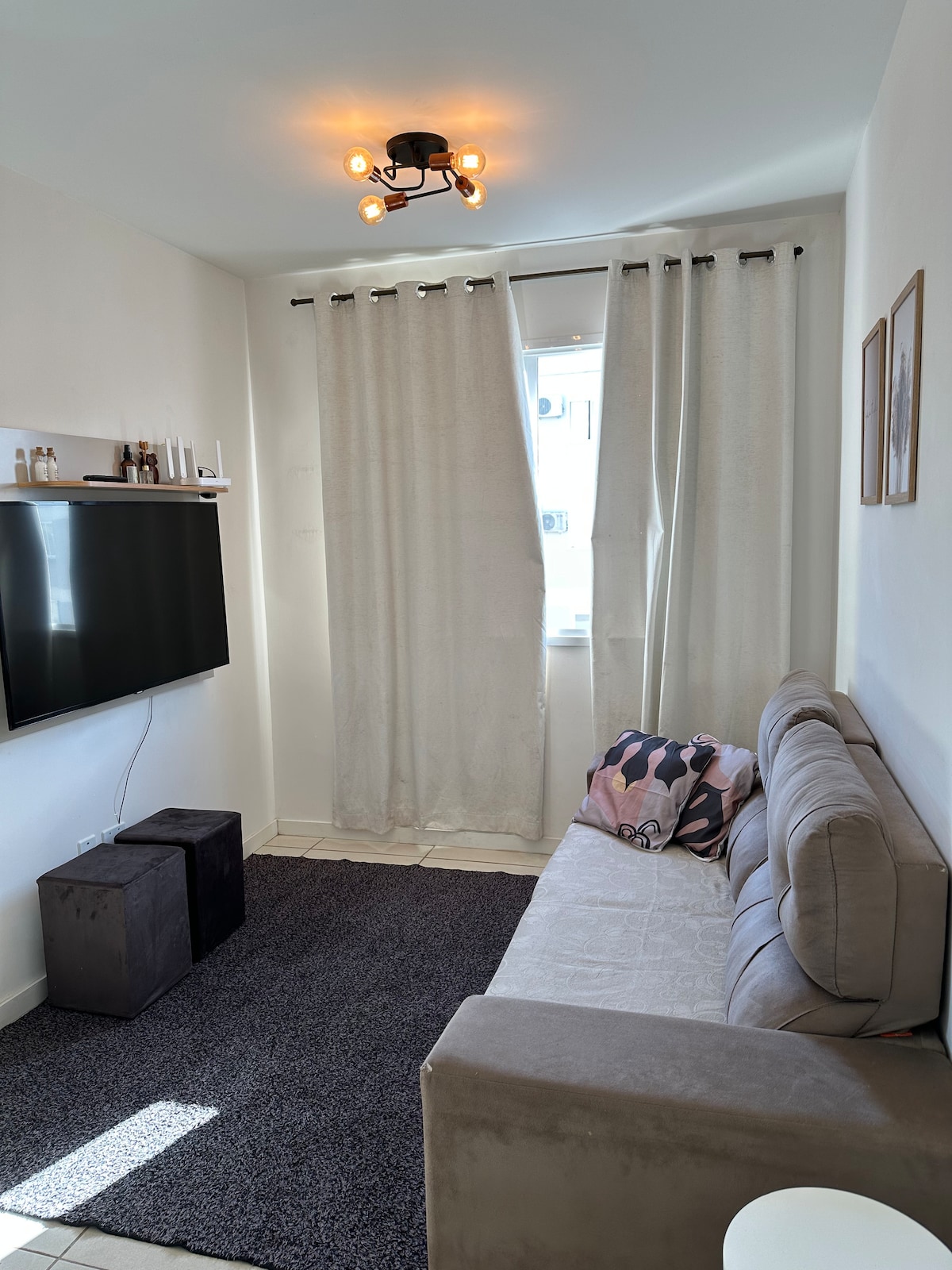 apartman zemin katta, iç barbekü alanına sahip, tam donanımlı küçük mutfak, çamaşır ve kurutma makinesi, tüm odalarda sıcak ve soğuk hava üfleyen klima, oturma odasında sadece soğuk hava üfleyen klima, apartman penceresine bakan park yeri, nevresim takımı, havlu ve ihtiyacınız olabilecek her şey ile birlikte harika bir apartman dairesi