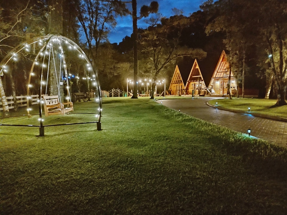 Konaklama yerimizin lüksü her detayın sadeliğinde ve sıcaklığında yatıyor ." Gelin, anların ve deneyimlerin tadını çıkarın, duygusal anılar yaratın! Sığınağımız doğanın tam ortasında, güzel araucaria ağaçları ve korunmuş yerli ormanlarla çevrilidir, bu da manzarayı benzersiz ve büyüleyici kılar. Doğal bir ortam olduğu için, doğayla temas halinde olmanın benzersiz deneyiminin bir parçası olarak, bazen böceklerin ve yerel fauna ve floranın diğer unsurlarının bulunması mümkündür.