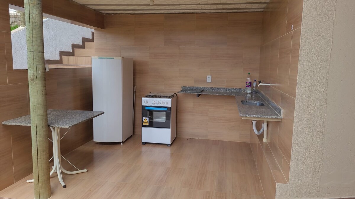 📍Self Check in 📍Garagem 📍Cozinha Completa 📍Wi-Fi 📍Lavadora e /ou secadora 📍Roupa de cama mesa e banho 📍2 cama de casal 📍2cama de solteiro 📍Berço pra bebê 📍Cadeira pra alimentação do bebê 📍2 banheiros (1 suite) 📍2 quartos 📍Sala confortável com TV 📍Sala de jantar 📍Sacada Com Vista Pra Avenida Principal 📍Terraço 📍Quintal 📍Permitido animais 📍Ao lado do supermercado e restaurante