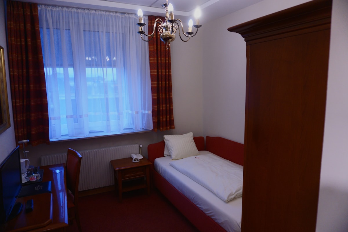 Tarihi Hotel Kürschner'da, dinlendirici bir gece için sizi ağırlamak için bekleyen rahat bir yatağa sahip geniş ve rahat bir tek kişilik oda bulunmaktadır. Oda bir masanın yanı sıra rahatlayabileceğiniz konforlu bir oturma alanı ile donatılmıştır. Banyoda geniş bir duş veya küvet, yüksek kaliteli tuvalet malzemeleri ve kabarık havlular bulunmaktadır.