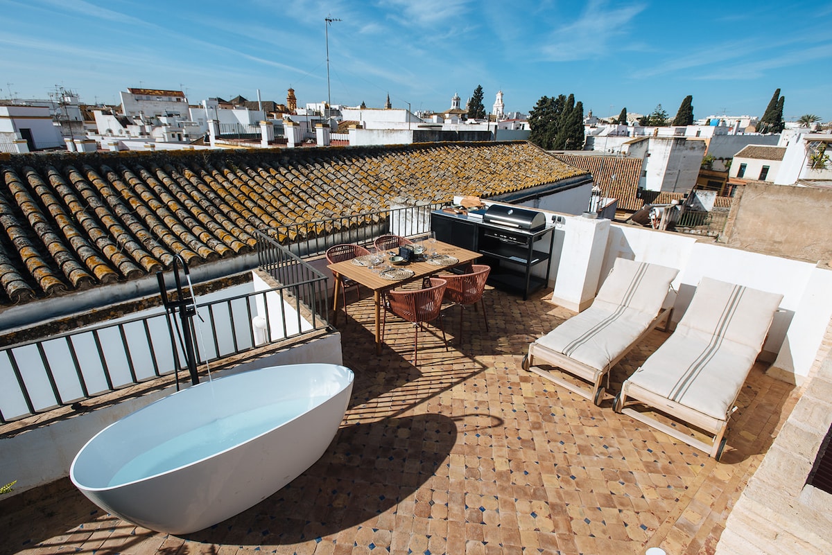 Bu lüks daire, Sevilla'nın göbeğinde, üç UNESCO Dünya Mirası anıtına bakmaktadır: Katedral, Giralda, Archivo de Indias ve Kraliyet Alcázarları. Modern tasarıma sahip dairede 1 yatak odası, 1 banyo, akıllı TV'li bir oturma odası ve ekmek kızartma makinesi, blender, fırın, su ısıtıcısı ve Nespresso kahve makinesi gibi üst düzey cihazlara sahip tam donanımlı bir mutfak bulunmaktadır. Ayrıca, şehrin ana anıtlarının muhteşem manzarasına sahip özel bir terası vardır.
