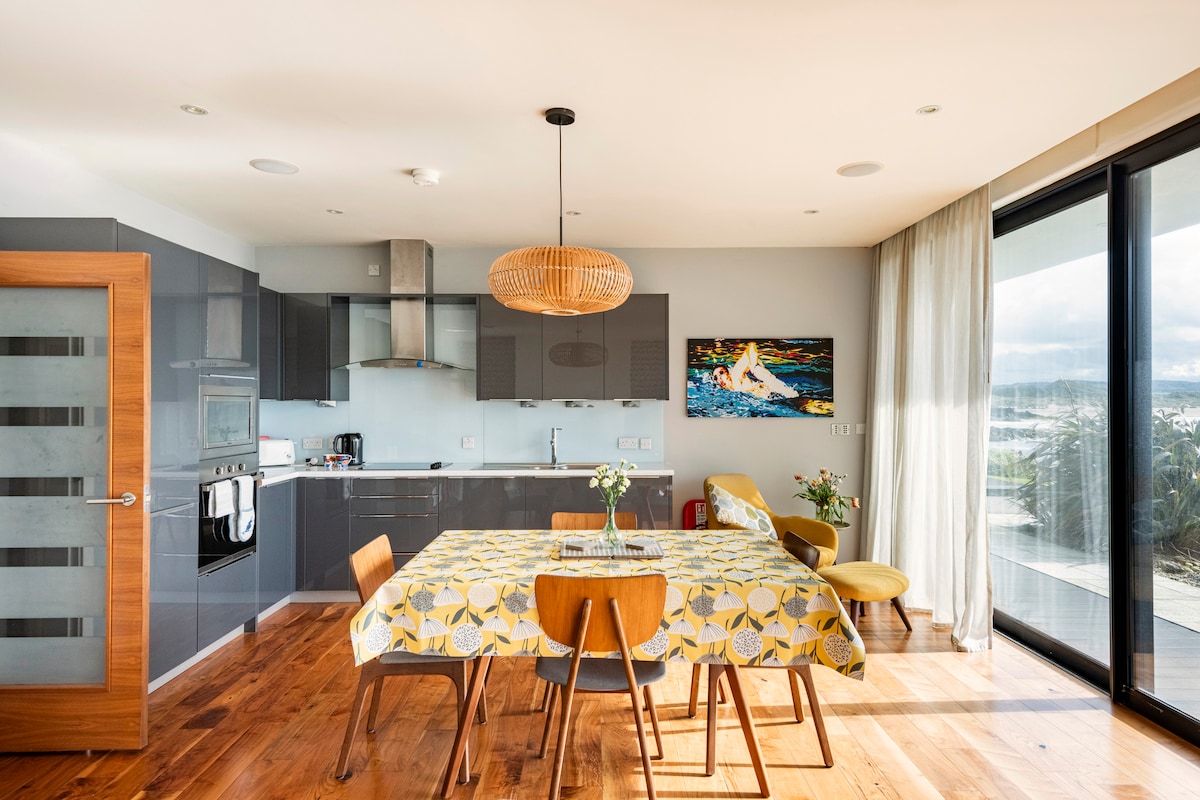Wild Atlantic Way'de mimari olarak tasarlanmış modern bir ev, bahçenin alt kısmında yüksek bir kuş gizleme yeri ile vahşi bir kuş sığınağına bakıyor; kütüphanede dürbün ve kuş kitapları. Ev, Kuzey Işıkları ve Star Wars'un çekildiği yer olan Malinhead'e arabayla çok yakın ve Malin Köyü'ne sadece 2 km uzaklıktadır. Güzel Five Fingers Strand kısa bir araba yolculuğu veya daha uzun bir yürüyüş mesafesindedir. Jakuzi de misafirler için uygundur.