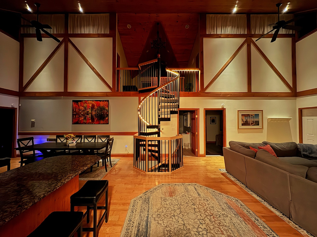 Beş dönümlük güzel ağaçlık dağ arazisine gizlenmiş, güzel 5 yatak odalı, 5 banyolu evimiz var. North Conway'e 10 dakika mesafede! Sadece tüm ortak olanaklara sahip değiliz, aynı zamanda oldukça özel olanaklarımız da var: bir sinema salonu, bir spor salonu, 3 odada surround ses, üst katta bir bilardo, pinpon ve bir masa ile donatılmış bir oturma alanı! Güzel bir odun şöminesi ve misafirler için ekstra uyku seçeneklerinden bahsetmiyorum bile (yatak odalarına dahil edilmiyor)