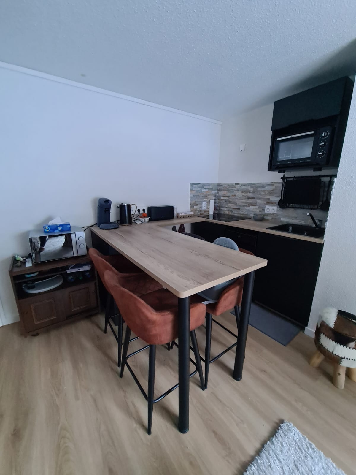 Stüdyo 21,5 m2 tavan arasıdır ve 160/200 yatağa gruplandırılabilen iki adet 80/200 yataklı küçük bir yatak odasına sahiptir. Oturma odasında mutfak ve 160/200 yatağa kolayca dönüştürülebilen bir bank bulunmaktadır. 4 yatak vardır. Yamaçlar 5' yürüme mesafesindedir ve doğrudan kayakla geri dönüp kayaklarınızı bir dolaba bırakabilirsiniz. Kendi çarşaflarınızı (çarşaf, havlu) getirmeniz ve çıkarken temizlemeniz istenecektir.