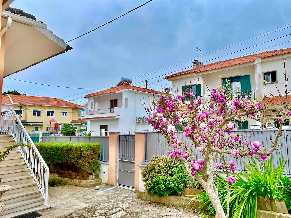 - Zemin kat daire, 1 yatak odası, 1 oda, 2 yatak. - En fazla 4 kişilik konaklama, gecelik 20 EUR ek ücret, 2 kişilik - Yemek odası ve oturma odası, teras, TV, kablosuz internet bağlantısı. - Hamak ve masa tenisi bulunan açık alan, barbekü alanı, ışıklı oyun alanı, dev trambolinli huzurlu bahçe. - Küçük mutfak - Cascais Tren İstasyonu (1100 m) - Lizbon, Sintra, Cascais, Carcavelos - 3 plaj - Centro de Cascais (1300 m)