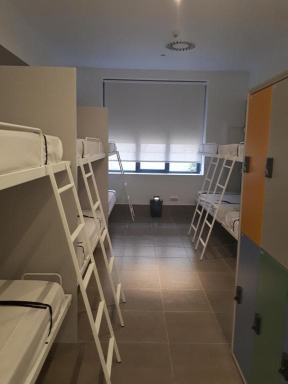 Doğal ışıklı geniş yatak odasında yatak. Literas 2 metre uzunluğunda. Her yatağın kendi ışığı, fişi, USB soketi ve rafı vardır. Her ranzada daha fazla mahremiyet için "karartma" tarzı bir perde ve yatağın altında asma kilitlenebilir büyük bir tek çekmece vardır. (Resepsiyonda kiralanabilir). Şunlara sahipler: Klima Isıtma Yüksek hızlı KABLOSUZ İNTERNET BAĞLANTISI Koridorda müşterek banyolar ve duşlar Mantas Çarşaflar Havlular (ekstra ve istek üzerine ekstra) Bez raf