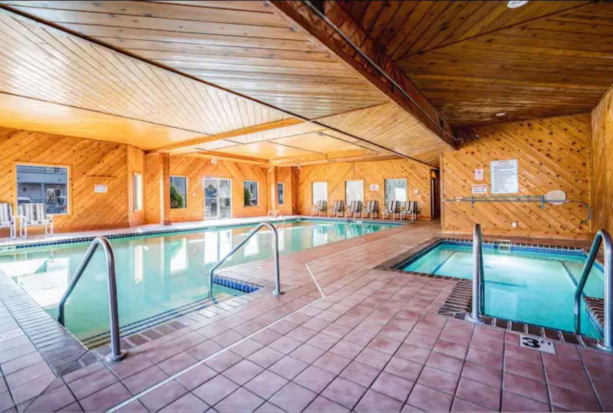 Wisconsin Dells şehir merkezinin sakin bir bölgesinde nehir kenarında bir yatak odalı konut. Güzel River Walk yakınında bir yürüyüşe çıkın ve Downtown Wisconsin Dells'in muhteşem manzarasının ve benzersiz cazibe merkezlerinin tadını çıkarın. İster dinlenmek ve rahatlamak için birkaç güne ihtiyacınız olsun ister iş veya oyun için şehirde olun, dairemiz tam donanımlı bir mutfak, king boy yatak ve queen boy çekyat sunar. Kapalı ortak havuz, jakuzi ve sauna bulunmaktadır. Ayrıca mevsimlik açık havuz da bulunmaktadır.