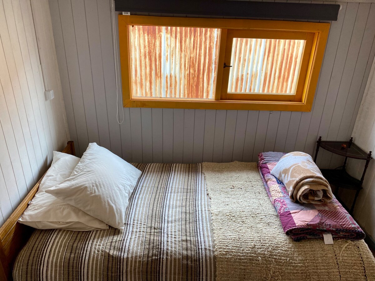 Biz Şehir Merkezi Castro'dan otobüs terminaline sadece 10 dakika yürüme mesafesindedir. Chiloe'deki konaklamanızı en konforlu ve keyifli hale getirmek için evimizi ve hizmetlerini paylaşıyoruz. Donanımlı mutfak, ortak banyo (birinci kat), kablosuz internet bağlantısı, ortak alanda klima ile ev ısıtması. İkinci kattaki odada tek kişilik yatak (0,90 cm genişliğinde x 1,90 cm uzunluğunda), masa, sandalye bulunmaktadır.