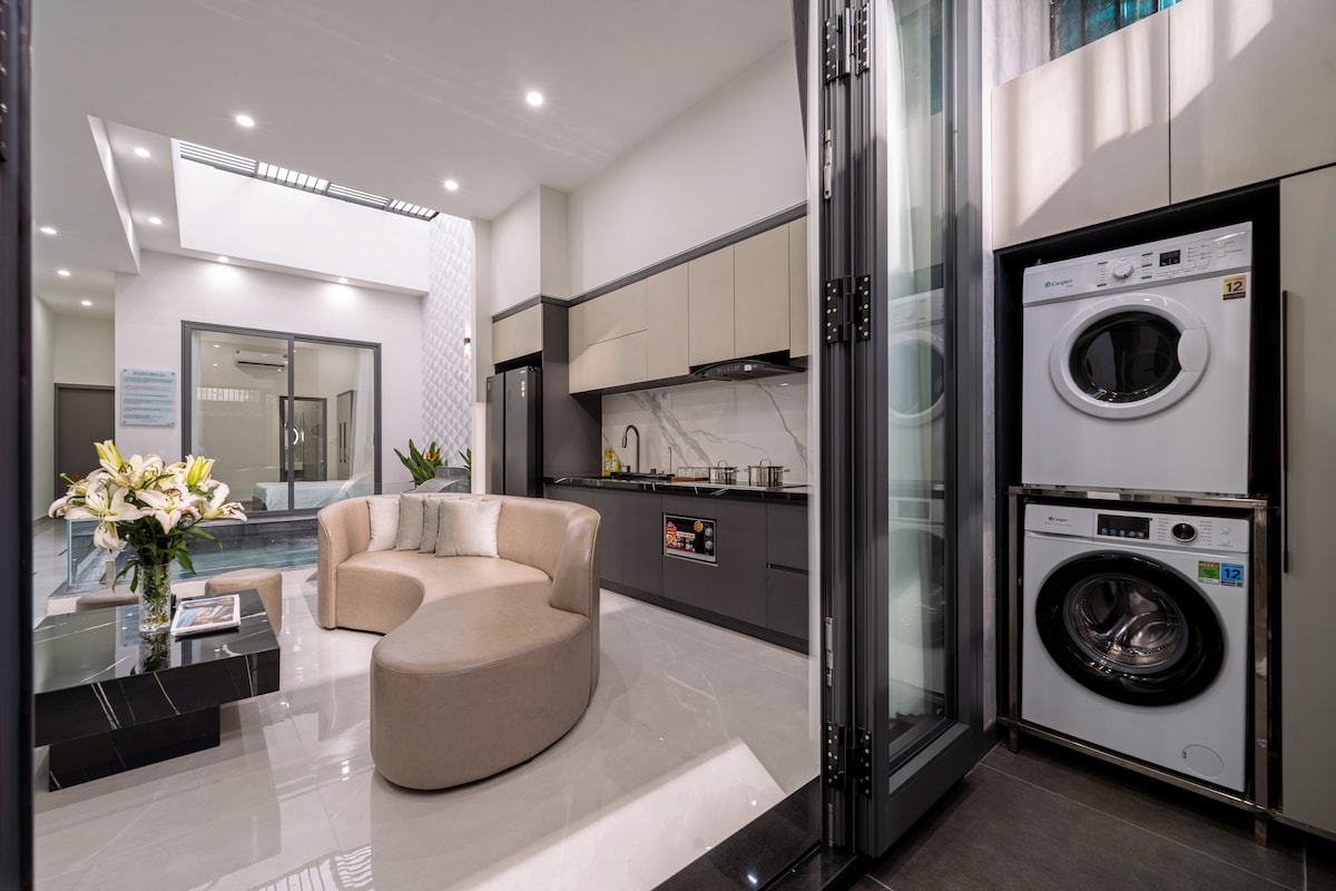 Mika Villa'ya hoş geldiniz! Da Nang'daki rüya gibi saklanma yeriniz — özel bir 3 yatak odalı, ikonik dağ manzarasına ve huzurlu bir havaya sahip Santorini esintili bir inziva yeri. Temiz, modern tasarımı ve pırıl pırıl özel havuzu ile aileler, arkadaşlar veya sakinleştirici bir ortam arayan çiftler için mükemmel bir kaçış noktasıdır. Plaja sadece 10 -12 dakika yürüme mesafesinde, ancak şehir kalabalığından uzak olan Mika Villa, can attığınız sakinliği ve hak ettiğiniz konforu sunuyor. Mika Villa'da fişi çekin, gevşeyin ve güneşin tadını çıkarın.