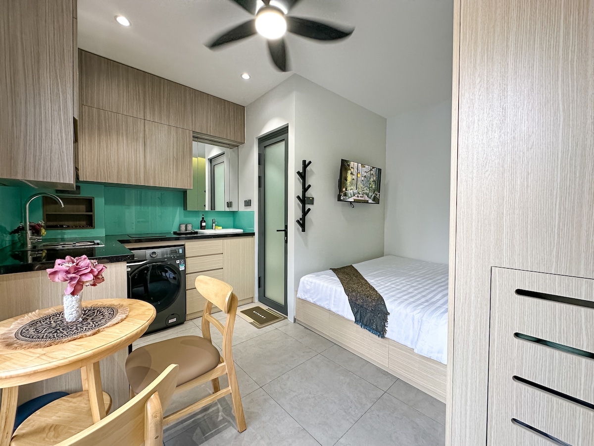 Studio apartment with unique design located in a lovely alley in Saigon Center. The studio is located on the 2nd floor of a townhouse, of which the 1st floor is the lovely BeanThere cafe. It only takes a few minutes to reach attractions and nightlife activities. Besides, there is also a kitchen to cook basic meals. One breakfast (01 food and 01 drink) / guest / night in Beanthere cafe. We offer free housekeeping for bookings longer than 4 nights. If needed, you can notify 1 day in advance.