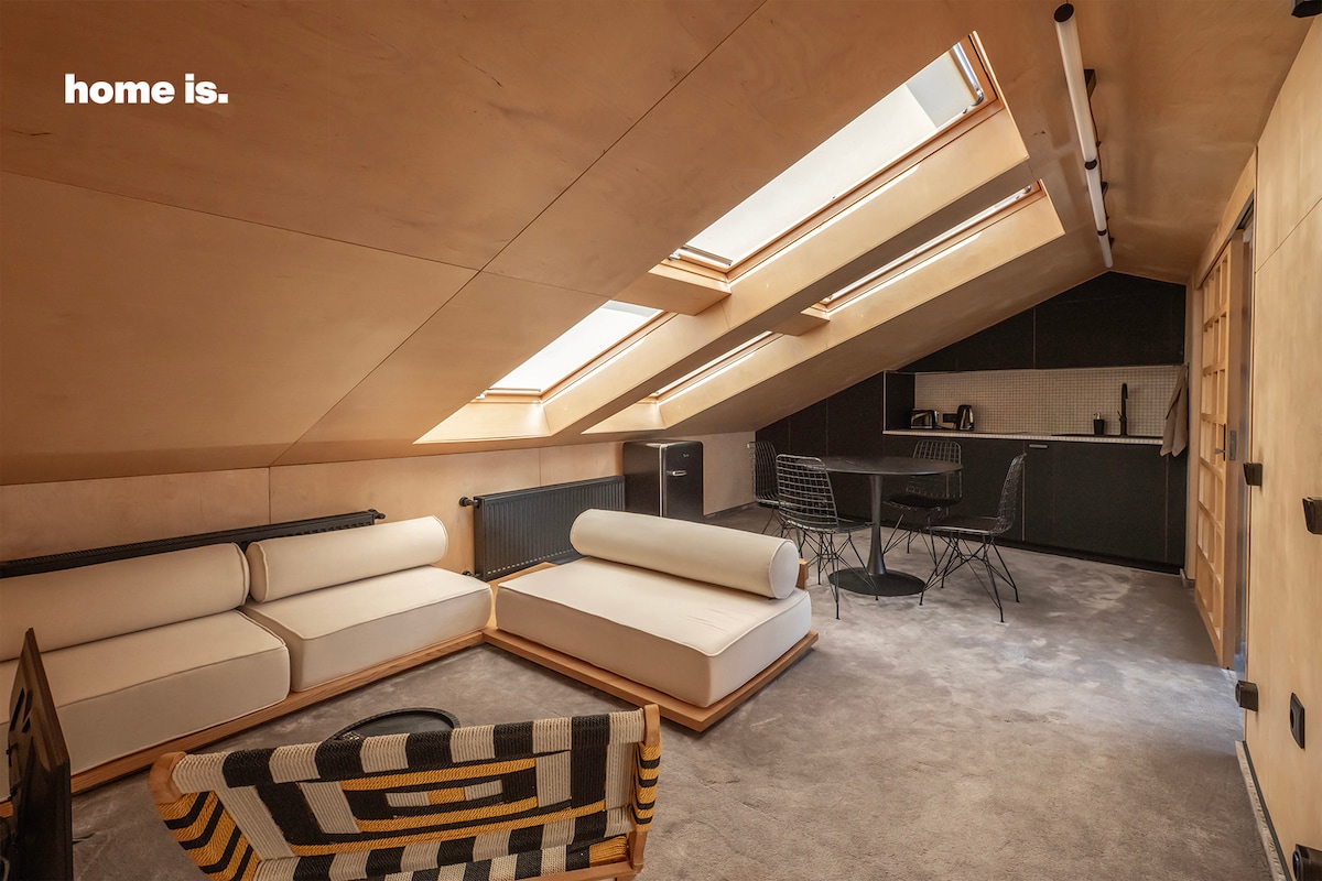 Çatı katı, eski Tiflis'in en büyüleyici semtlerinden biri olan Vera'da, 12. katta, nefes kesici bir şehir manzarasına bakan bir terasa sahiptir. Ziyaret edilmesi gereken 1 numaralı şarap fabrikası, çok çeşitli bar ve restoranlara sahiptir ve birkaç dakika yürüme mesafesindedir. Paris butik tarzındaki iç mekan, ödüllü yerel bir tasarımcının eseridir. Yerden tavana kadar uzanan pencereler, duştan bile bol güneş ışığı, doğal ışık ve güzel manzaralar sunar:) ama gündüz hayalperestleri için ağır perdeler de vardır:)