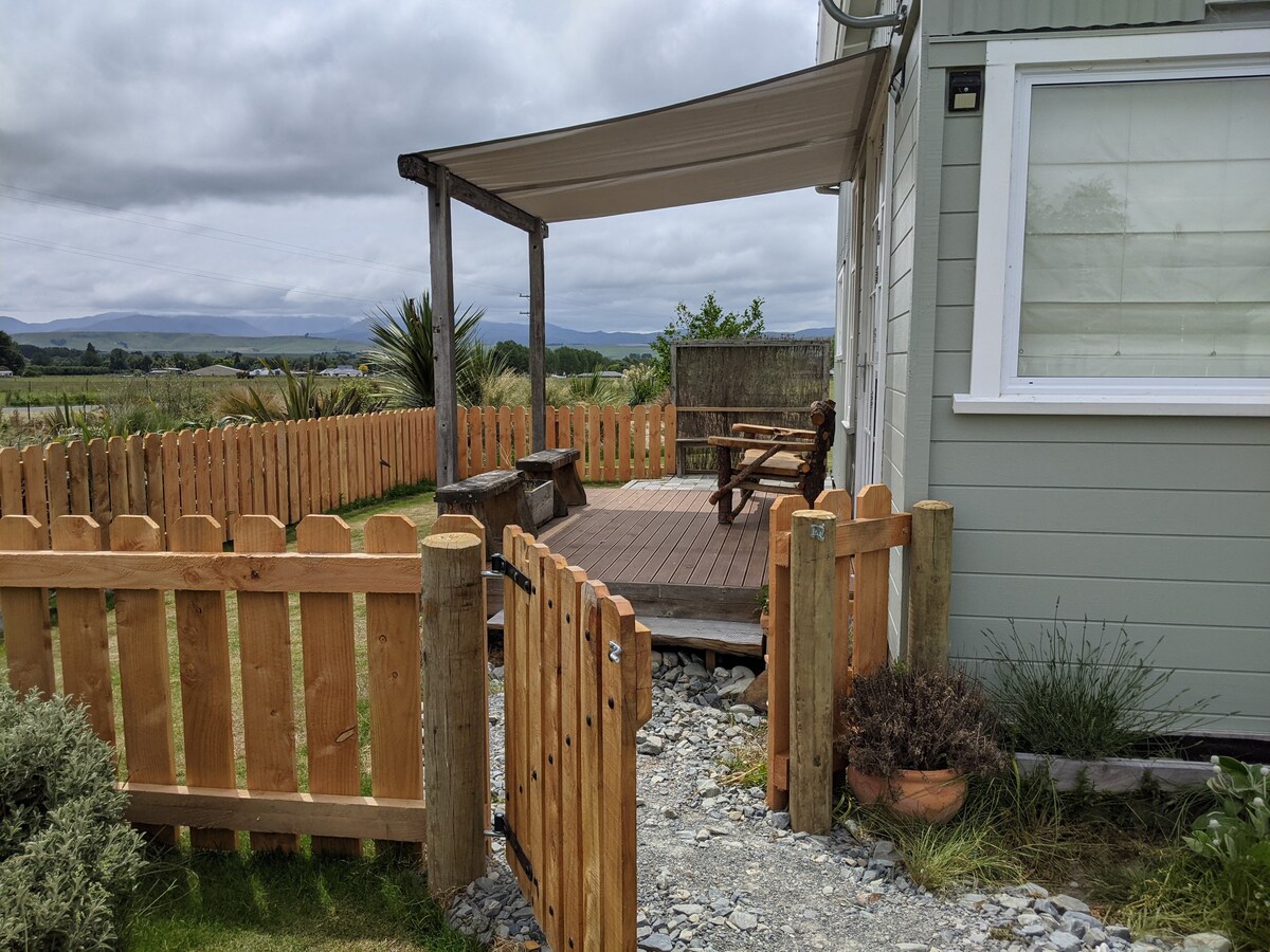 Sıcak ve rahat kulübe, barbekü, özel teras ve dinlendirici yerel bahçesi ile ana evden ayrı bağımsız bir ünitedir. Kendinize ait erişim/anahtarınız ve arazi park yeriniz olacak. Yerimiz çiftler için uygundur. Navman rotasında, Christchurch'ten 2 saat ve Queenstown'a 4 saat mesafedeyiz. Mt Hutt kayak alanına sadece 1 saat, Mt Dobson kayak alanına 1 saat mesafededir. Aoraki Mount Cook 2 saat, Tekapo ise 1 saat mesafededir.