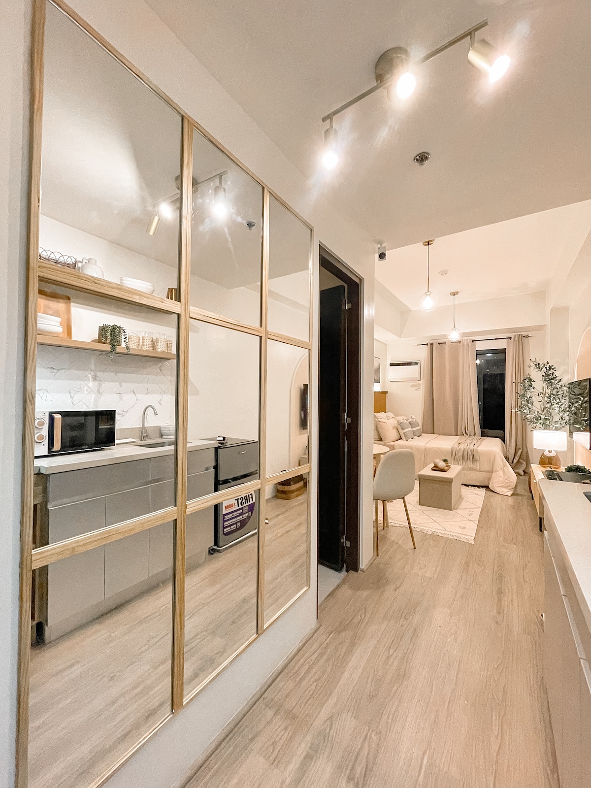 Snuggle up in this calm, Elegant fusion of Zen-Industrial inspired 27sq.m studio unit at 16th Floor which is located in an understated area in Lapu-Lapu City, that is easily accessible from Mactan Cebu int'l Airport (13 mins ride), public markets, churches, and 7/11 on site. It is an Ideal options for travelers' looking for reasonable-priced lodging to visit Cebu, Note: The Guest in Excess of 3 will be using the floor mattress Provided. Location: Saekyung 956 condo Looc Lapu-Lapu City