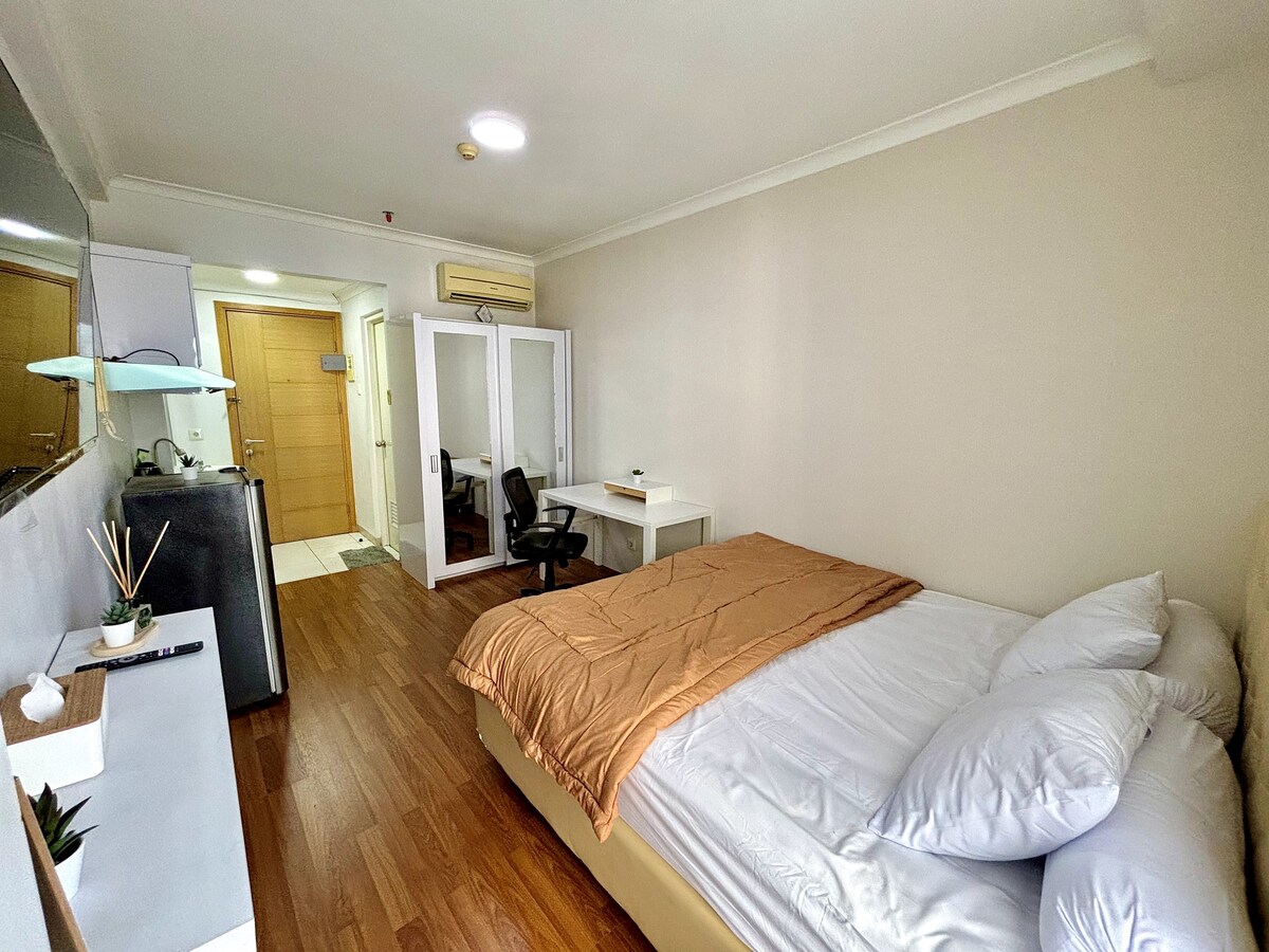 "Benzersiz Japon Tarzı. Ev gibi. Temiz ve düzenli. Olanaklar iyi. Harika, hızlı yanıt veren ev sahibi. Stratejik konum." Bunlar misafirlerimizin değerlendirmelerinde öne çıkan özelliklerdir. Evinizden uzakta bir ev olduğundan emin olmak için mekânımızı tasarlamak ve tamamlamak için kalbimizi döktük. Jakarta'nın ana yollarından birinde yer alan yerimiz, Jakarta'nın koşuşturmacasından uzaklaşmak için mükemmel bir seçimdir. Konaklamanız için rezervasyon yapmak üzere bize mesaj gönderin, sizi ağırlamaktan memnuniyet duyarız. ***Not: Fiyatımıza misafir hizmet bedeli dahildir.