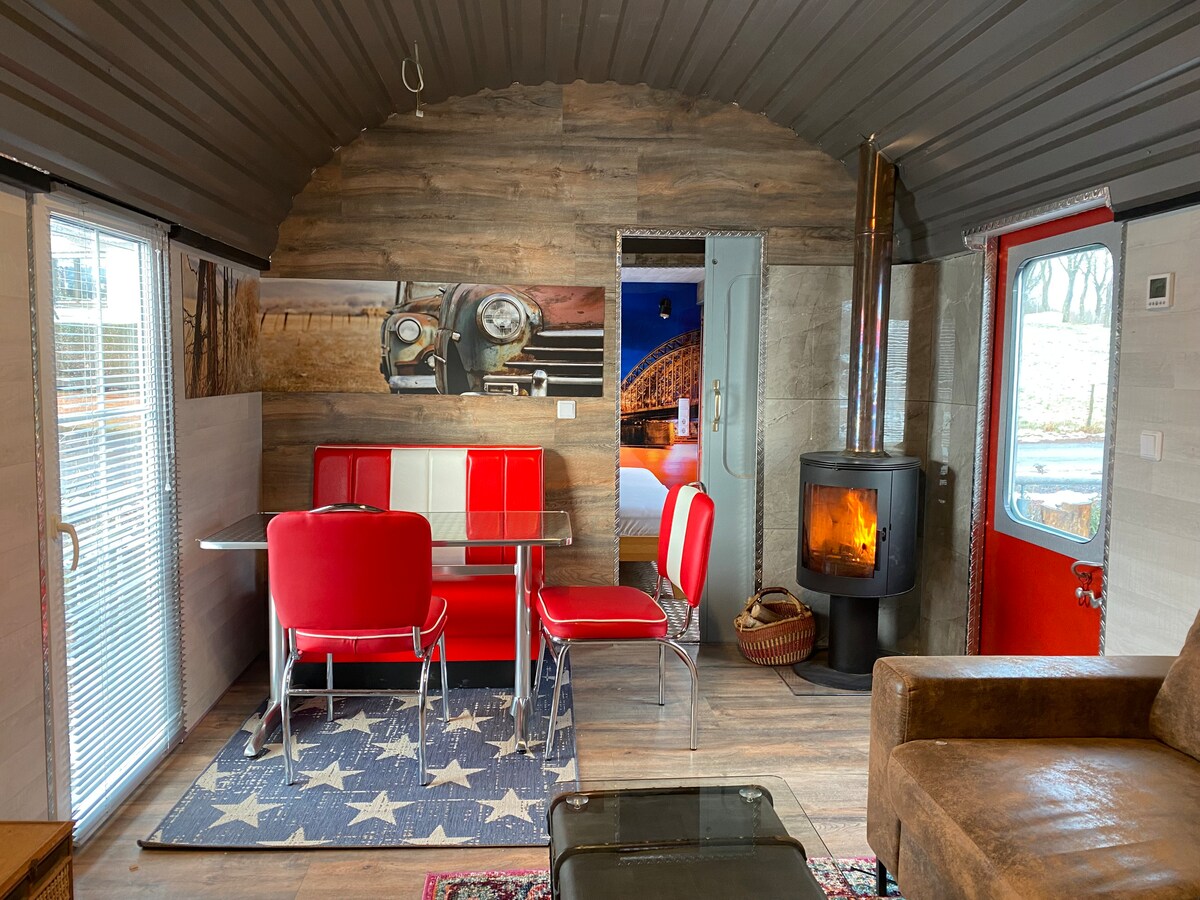 Olanaklarla tamamen sıra dışı bir konuta dönüştürülmüş eski sığır vagonu Elektrik , sıcak su, duş, tuvalet , ancak lüks veya gereksiz değil, dinlenmek , dinlenmek ve güzel Vosges ormanımızda yürümek için yeterli ve Alsace'a 10 km. - Yatak 120/190 - 18 yaşına kadar olan çocuklar için grandatuit - Odun ısıtması sağlanır + elektrikli konvektör - Odun sobası + 2 ocaklı küçük elektrikli fırın