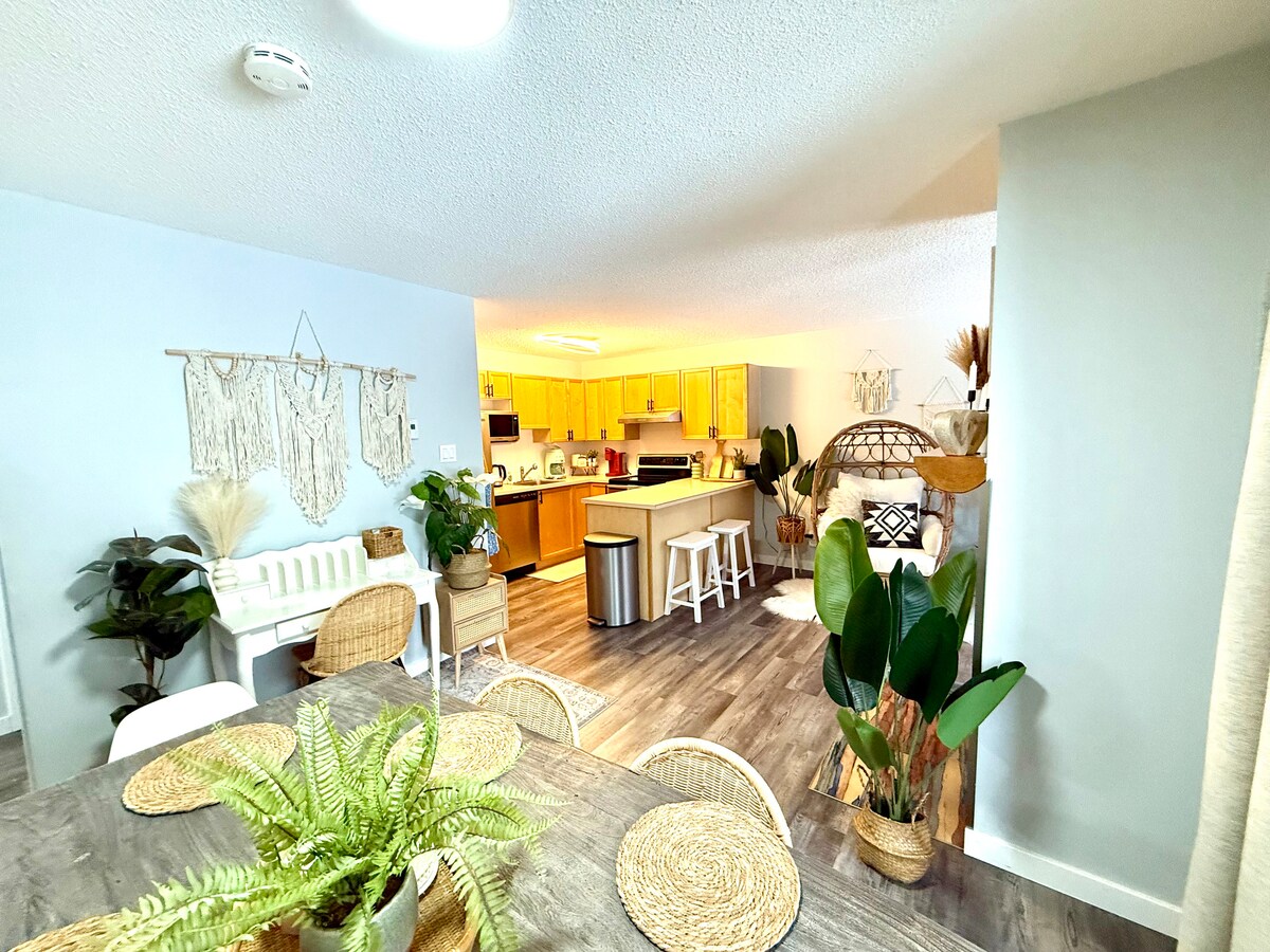 First Chair Bed & Shred, tamamen evcil hayvan dostudur. Evimizdeki lisanslı 1 yatak odalı süitimiz, RMR'ye 5 dakika mesafede, toplu taşıma ve Revelstoke kayak merkezi servisine bir blok uzaklıkta, sessiz bir semtte bulunmaktadır. Mutfak, queen boy yatak, jetli küvet, duş ve saunası vardır. Ücretsiz kablosuz internet bağlantısı ve TV. Özel giriş. Evcil hayvan dostuyuz. Uzun zamandır kayakçı ve arazi motorcusu olarak Revelstoke'un sunduğu her şeyi size göstermek istiyoruz. Güvenli park yeri ve kapalı depolama. RMR geçişlerini 24 saat önceden satın alın.