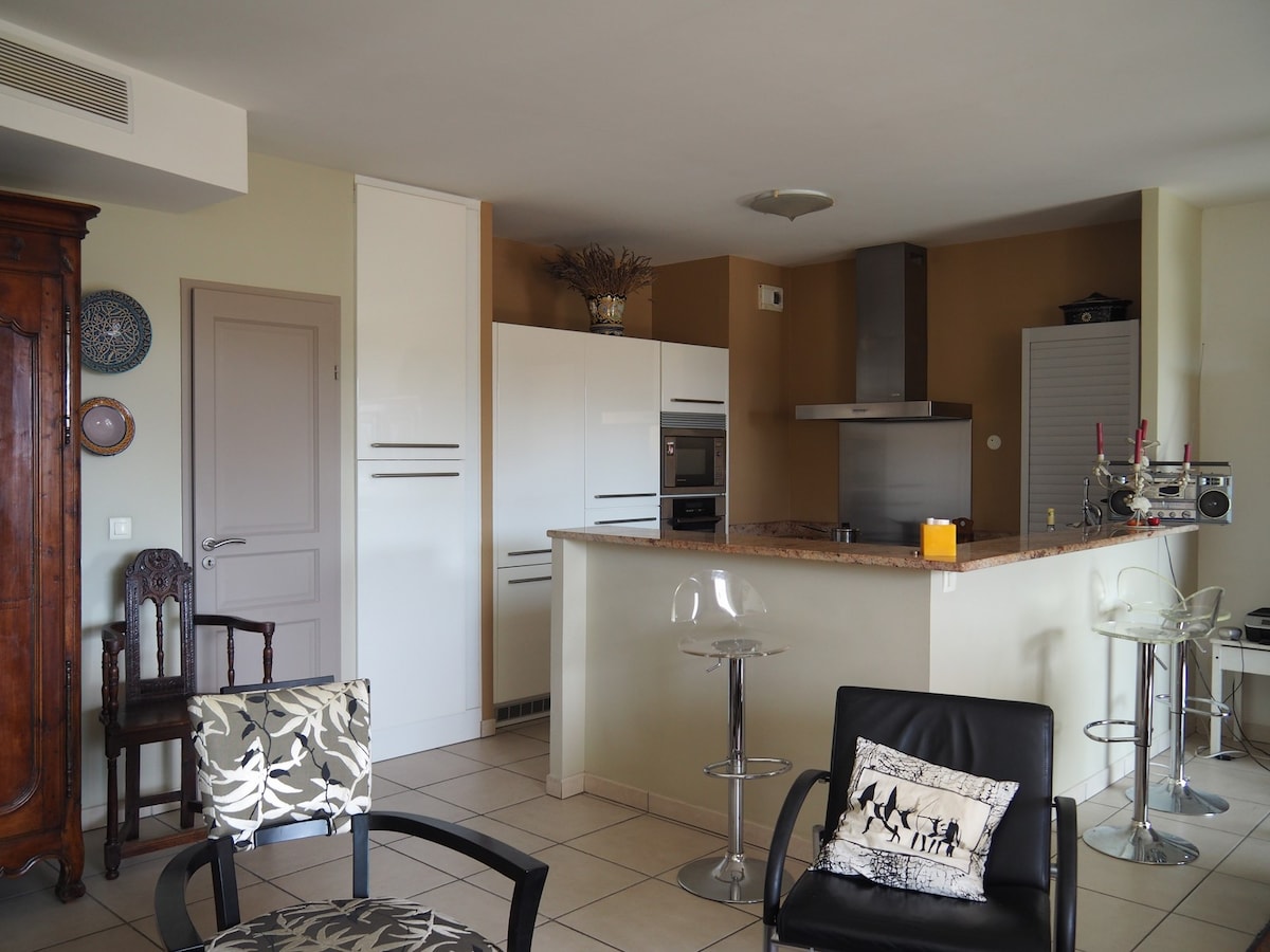 Dans un quartier calme et très recherché beau F2 de 55M2 dans résidence sécurisée tout confort avec belle terrasse de 15M2 donnant sur de la verdure sans vis à vis. Une chambre avec lit haut de gamme et séjour avec canapé en cuir. Téléviseur grand écran, wifi. Salle de bains avec baignoire et douche à l'italienne, wc séparés.