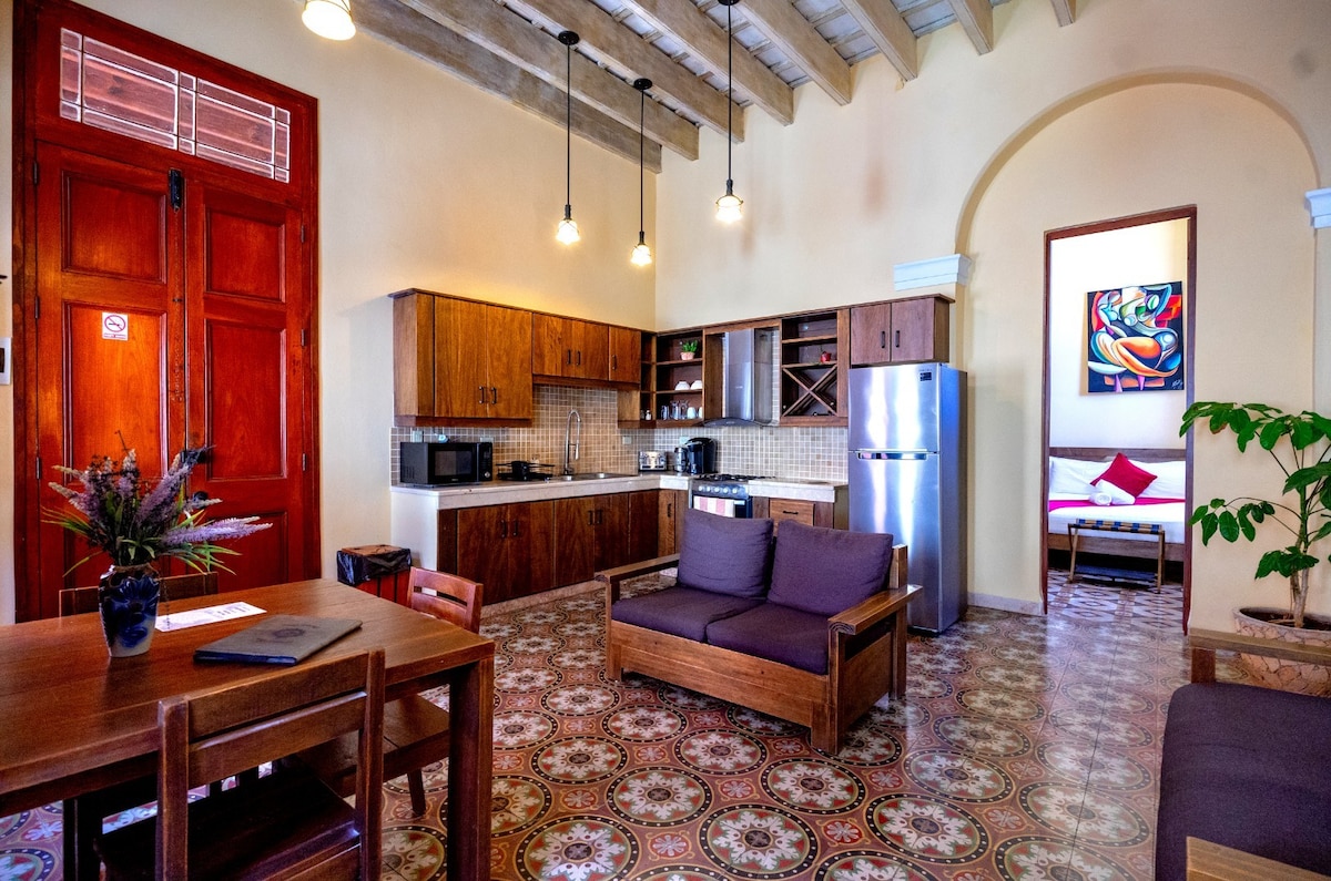 Eski Havana'nın göbeğinde, yenilenmiş bu modern dairede antik çağın ve modernitenin cazibesini hissedin. Üç odada altı kişiye kadar konaklayabilirsiniz, geniş bir salon, bir yemek odası ve tam donanımlı bir mutfak kendinizi evinizde hissetmenizi sağlayacaktır. Daire, 1940'lar ve 1950'lerden kalma tamamen restore edilmiş mobilyalarla döşenmiştir. Her yatak odasında bireysel klima ve dinlenmeniz için konforlu yataklar vardır.