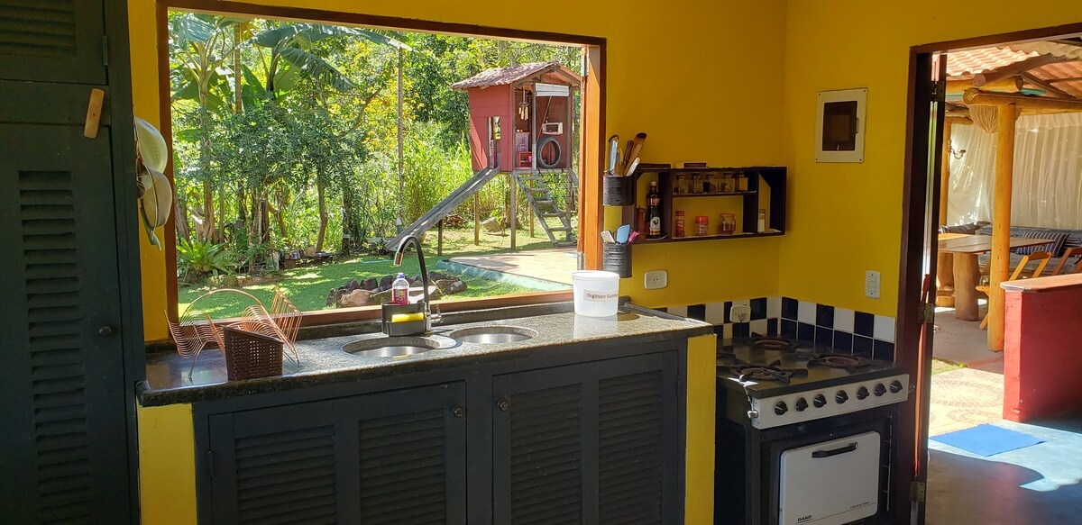 Kendinizi yemyeşil Atlantik Ormanı ile çevrili, tropikal kuşların yumuşak sesiyle bir soundtrack olarak hayal edin. Evimiz eşsiz bir doğa teması deneyimi sunuyor. Rustik, rahat ve ferah ortak alanlar olan ev sahipliğimiz birlikte kaçış arayan aileler için mükemmeldir. İyi donanımlı mutfakta ev yapımı yemeklerin tadını çıkarın veya ormana bakan balkonda dinlenin. Aile cenneti Nossa Quintal no Quilombo do Campinho, Paraty'ye hoş geldiniz.