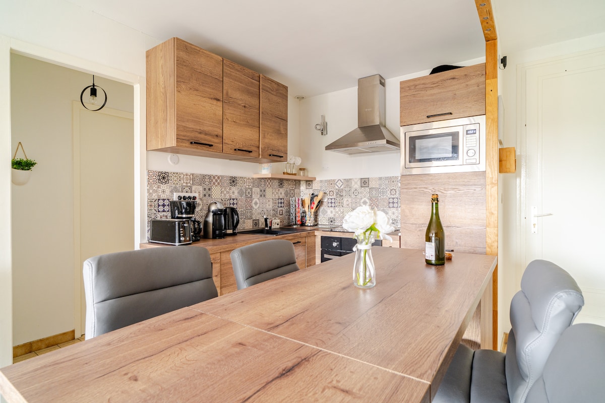 Mont - Saint - Michel'in önünde Duyusal Uyanış. 3 yıldızlı ve sertifikalı Qualidog olarak değerlendirilen bu basamaksız koza, deniz ve kırsal alan arasında yer alan bu basamaksız koza, körfezin engelsiz 180° manzarasını sunuyor. İçeride: 2 rahat yatak odası, donanımlı mutfak, odun sobası ve çekyat bulunan oturma odası. Veranda mekânı ışıkla dolduruyor, Bonzini langırt masası ve ağaçlık bahçe sizi dinlenmeye davet ediyor. Zarafet, dinginlik ve unutulmaz anlar arasında nadir bulunan bir sığınak; hepsi tüylü arkadaşınız için erişilebilir.