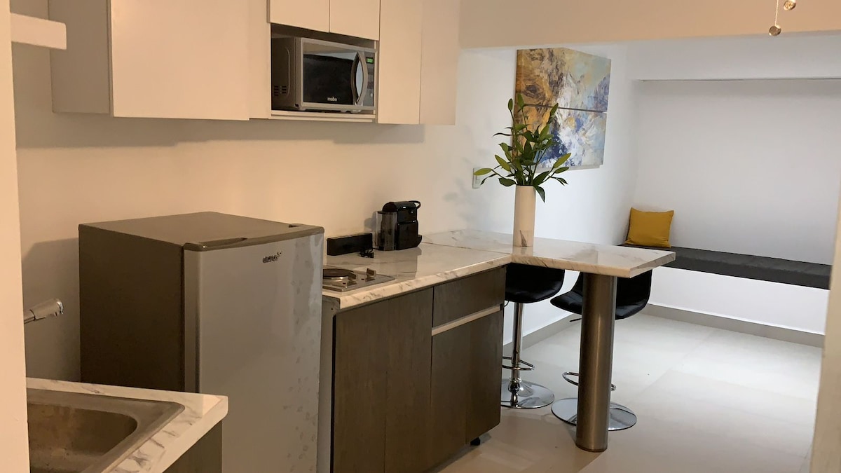 ✨ Monterrey'i Yukarıdan Deneyimleyin 🌆 San Pedro'daki muhteşem panoramik manzaralı modern 2 yatak odalı/2 banyolu dairemizde dinlenin. İki queen boy yatak, 2 tam banyo, tam donanımlı mutfak, klima, hızlı kablosuz internet bağlantısı, çamaşır makinesi-kurutucu, otopark ve 7 gün 24 saat güvenlik. İş, tıbbi veya eğlence seyahatleri için mükemmeldir: En iyi hastanelere, gösteri merkezine, alışveriş merkezlerine ve en iyi restoranlara dakikalar mesafesinde. Kısa veya uzun süreli konaklamalar için idealdir, ev konforunu sadece San Pedro'nun sunabileceği butik deneyimle harmanlar.