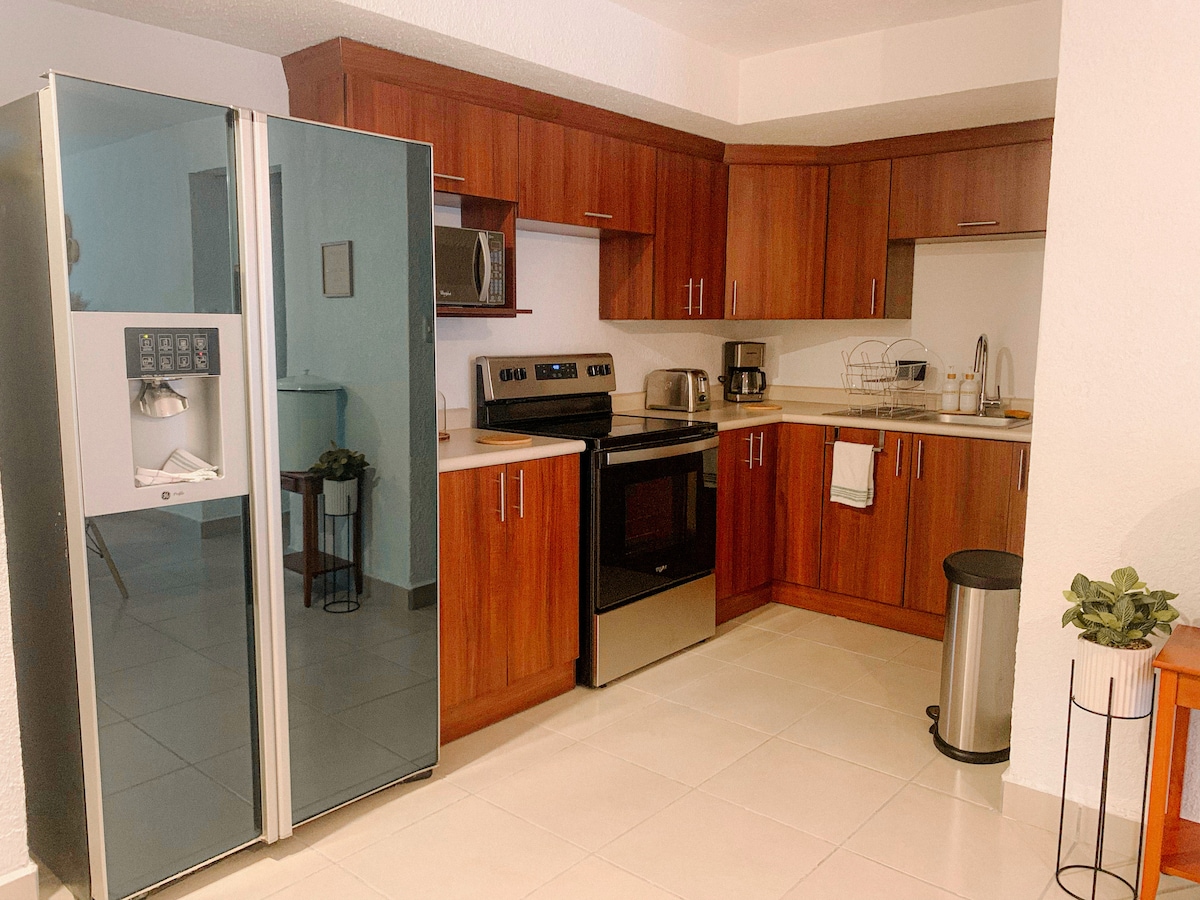 Interplaza Xela'nın önündeki bu sessiz ve bağımsız yerin konforunun tadını çıkarın. Tek başına veya daha fazla kişiyle ortamında dinlenebilir veya çalışabilirsiniz, donanımlı küçük mutfağı, 4 kişilik yemek odası, eğlence (43" TV, kablosuz internet bağlantısı, Netflix ve masa oyunları) olan oturma odası (çekyat) ve king boy yataklı yatak odası, masa, dolap ve sıcak su bulunan rahat bir banyosu vardır. 4 araca kadar ücretsiz güvenli otopark.
