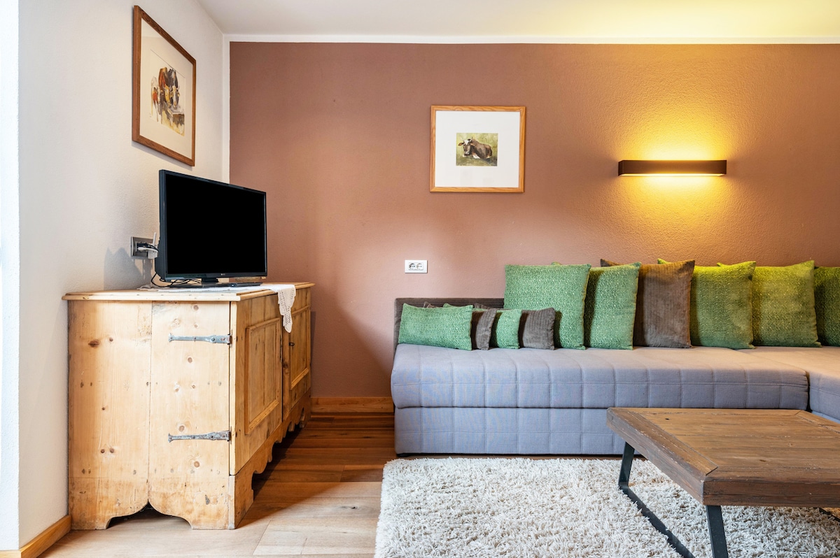 Florentines Seis'in yukarısında, 3 yatak odası (2 çift kişilik yatak, 1 ranza), 1 banyo, oturma odası, mutfak bulunan, özenle yenilenmiş bir daire (80 m²). Santner, Schlern ve Seis am Schlern köyünün muhteşem manzarasının tadını çıkarın! Geniş terasta güneşlenebilir, yemek yiyebilir ve günü rahat bir şekilde sonlandırabilirsiniz. Daire ormanın kenarında bulunur ve yürüyüşler için mükemmel bir başlangıç noktasıdır. Seiser Alm Bahn otobüs durağına birkaç dakikalık yürüme mesafesindedir.