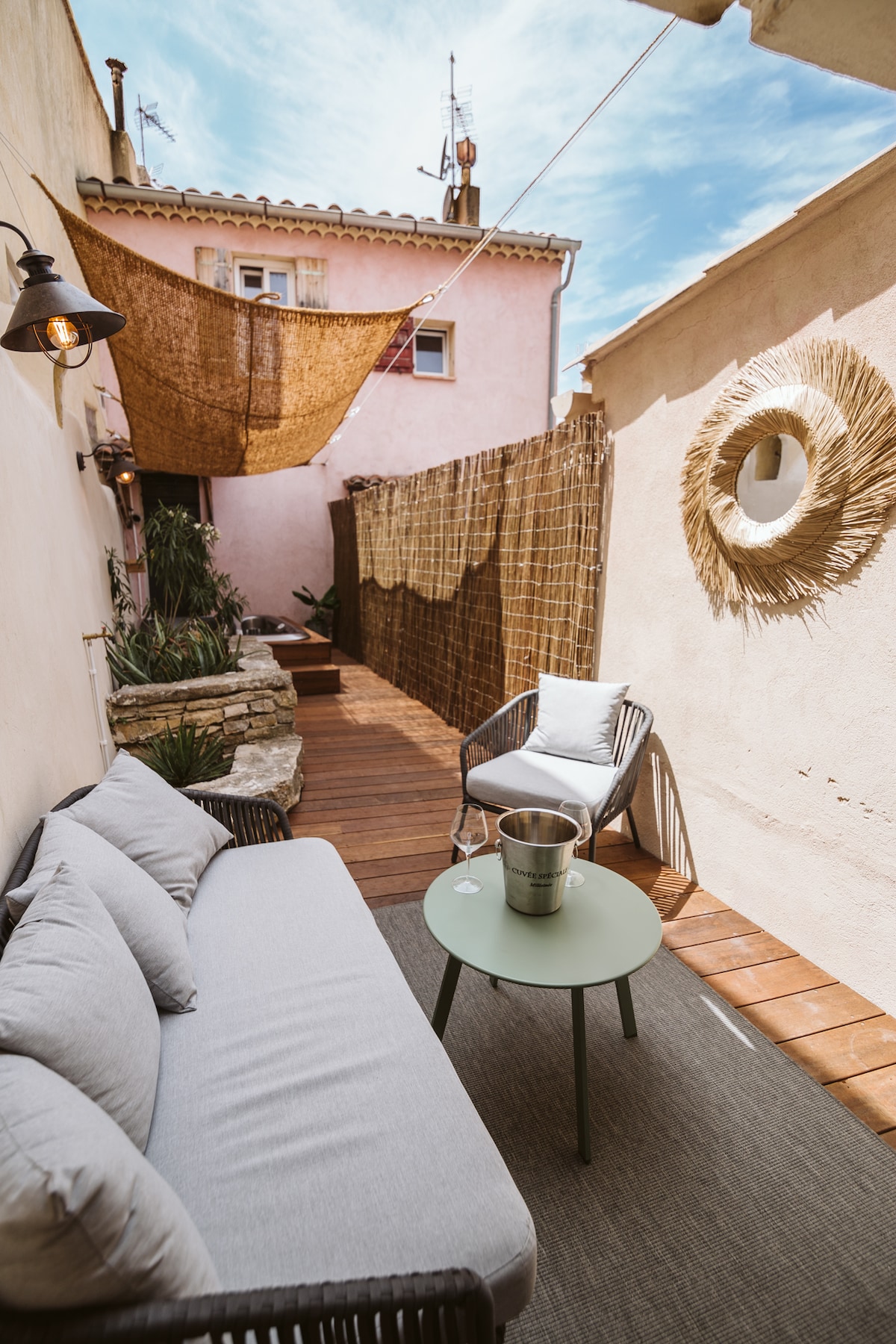 Un cocon élégant pour une parenthèse de calme et de bien-être, décoré avec soin et matériaux haut de gamme, vous accueille pour une escapade à deux sous le signe du confort et de la sérénité. À l’extérieur, une belle terrasse privative permet de profiter des beaux jours . Le jacuzzi privatif (chauffé ) est idéal pour se détendre accessible de 8h à 22h. Pensé pour les séjours courts, le logement dispose d’un espace nuit douillet, d’une salle d’eau moderne, d’un petit frigo et une plancha