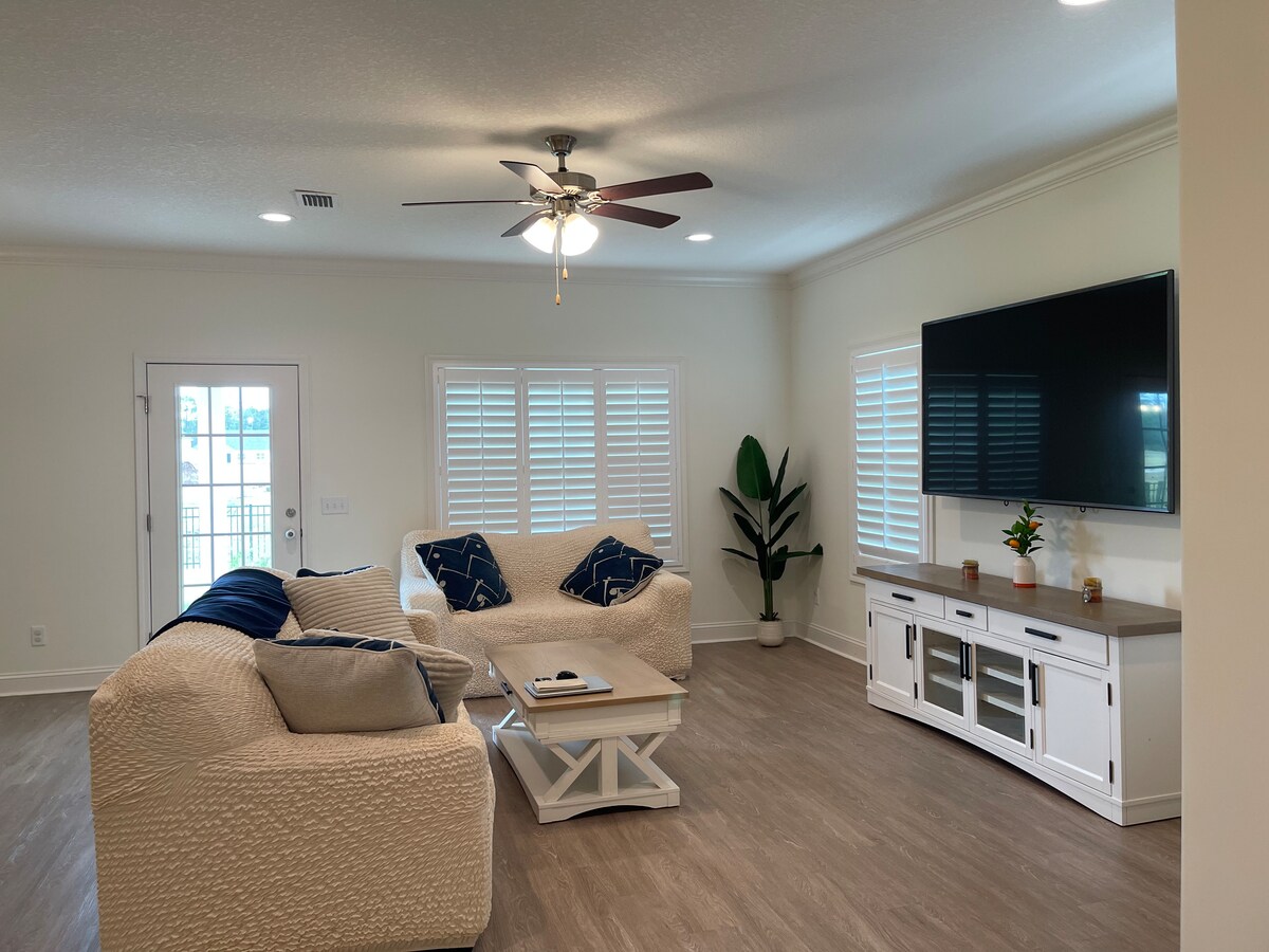 Bu huzurlu konaklama yerinde ailece dinlenebilirsiniz. FLETC'ye 5 dakika ve St. Simons Adası/Jekyll Adası plajı. Yakın zamanda tamamen yenilenen bu güzel evi memnuniyetle karşılıyoruz. Tüm yatak odalarında tavan vantilatörleri ve akıllı TV'ler vardır. Yüksek hızlı kablosuz internet bağlantısı mevcuttur. Mangal yapmak için mükemmel olan veranda mobilyalarına sahip bir arka güverte vardır. Mekân içinde sigara içilmez. Parti yasaktır. İznimiz olmadan yetkisiz misafir kabul edilmez. Evcil hayvan yasaktır. 1000 ABD doları ceza.