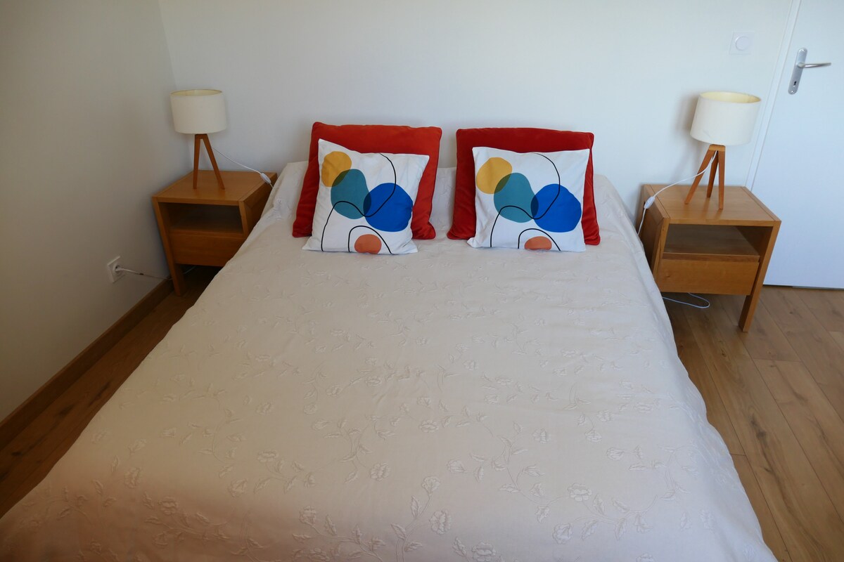 Sakin ve Konforlu Cassine tarafındaki tren istasyonunun yakınında ve şehir merkezine yakın. 20 m²'yi aşan stüdyo konforludur (gerçek yatak 140x190), özel banyosu ve ocak, mikrodalga fırın ve temel yiyecekler, çay, kahve, yağ vb. içeren küçük bir mutfağı vardır. Dekorasyon sade ve vintajdır. Pencereden tren istasyonu ve SNCF rotundası, uzakta Epine masifi görülüyor.