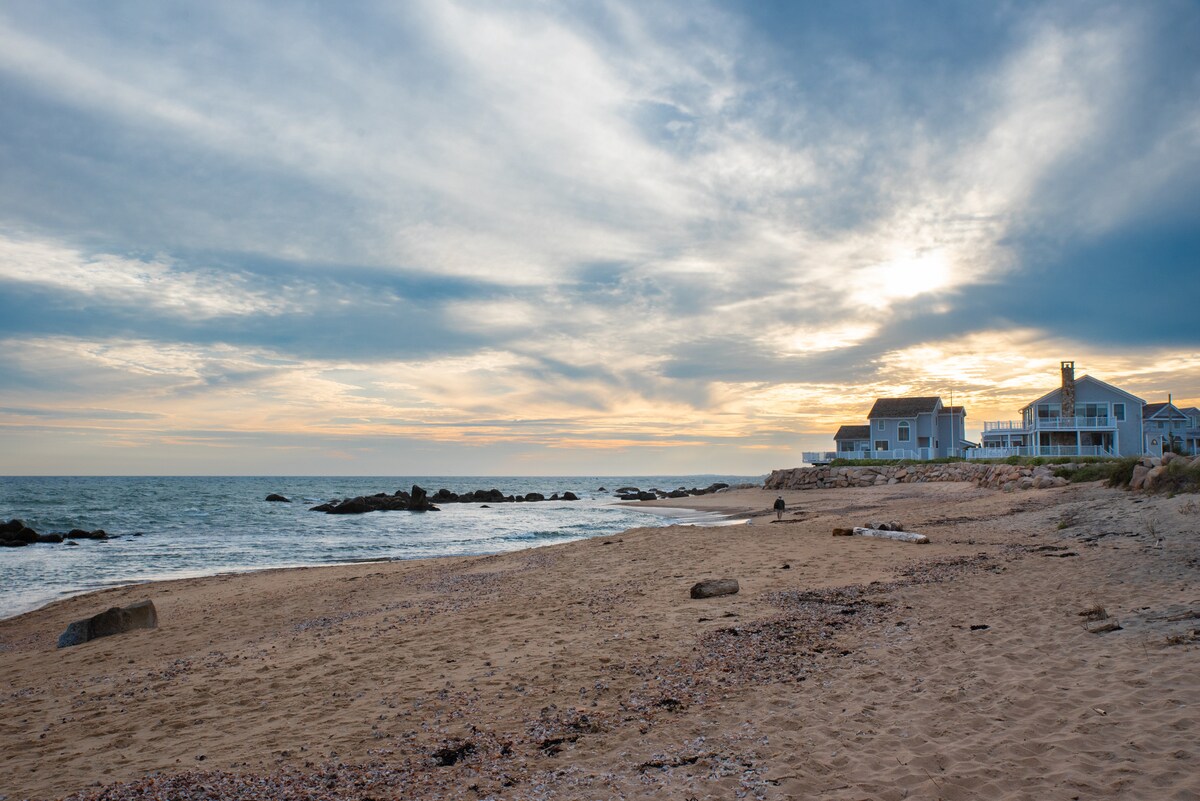 Great Island'daki bu sahil kır evi, olağanüstü sakin ve eşit derecede şık, özlemini çektiğiniz sığınaktır! 2 yatak odası ve 1 güzel fayanslı banyo, açık bir aşçı mutfağı ve yaşam alanı, hiç yorulmayacağınız manzaraları izlemek için her yerde pencereler! Kapalı verandada dinlenin veya derin su iskelesine ve bitişik plaj alanına kadar çimlerde yalınayak yürüyün. Galilee'ye, restoranlara, Block Island Feribotuna, beyaz kumlu plajlara, sörfe ve çok daha fazlasına sadece birkaç dakika mesafede!