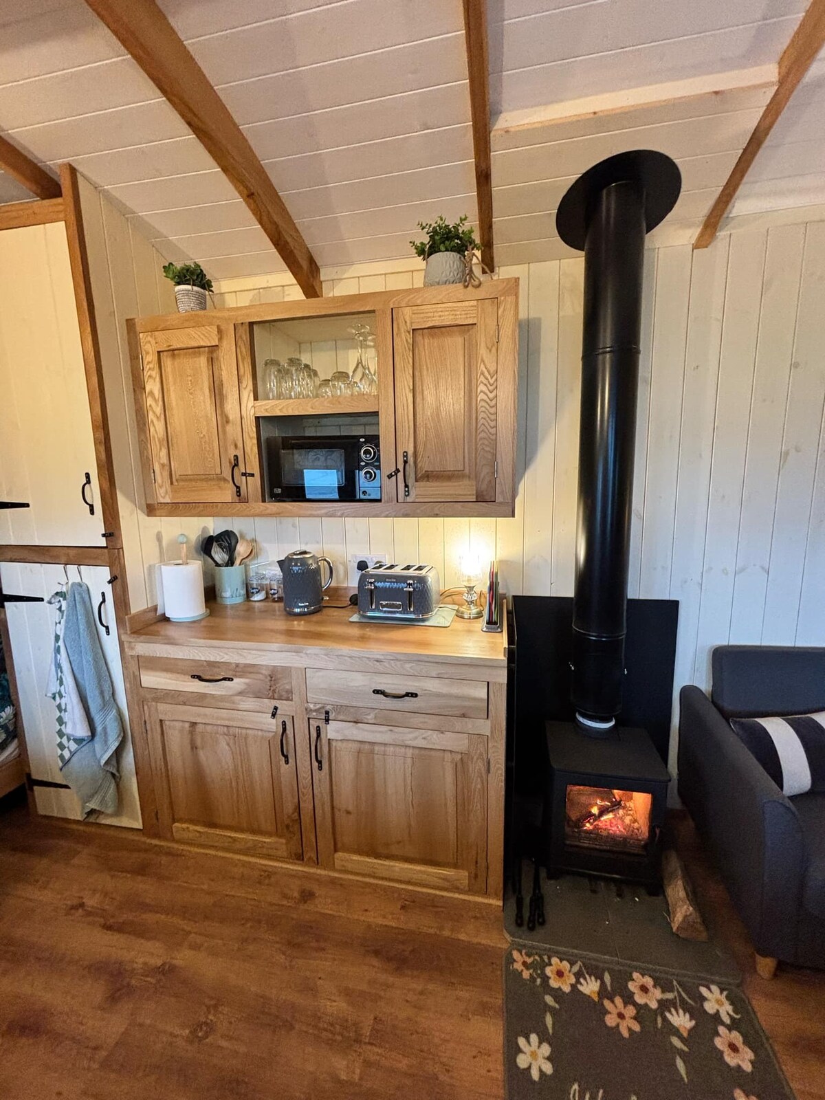 The CowByre Her yere seviye erişimi. 5 misafire kadar konaklayabilir, 1 çift kişilik oda (king boy yatak), 1 üç kişilik - bir ranza ve bir tek kişilik yatak. Kulübede ıslak odada yürüyüş alanı vardır. Mutfakta ince bir bulaşık makinesi, ocak, fırın, entegre buzdolabı, entegre dondurucu, ekmek kızartma makinesi ve mikrodalga fırın bulunmaktadır. Konaklama yerinin her yerinde yerden ısıtma vardır. Kulübenin dışında bir veranda oturma alanı, erişilebilir rampa, ateş çukuru vardır. Misafirlerin kullanabileceği bir tesis içi çamaşırhanemiz var.