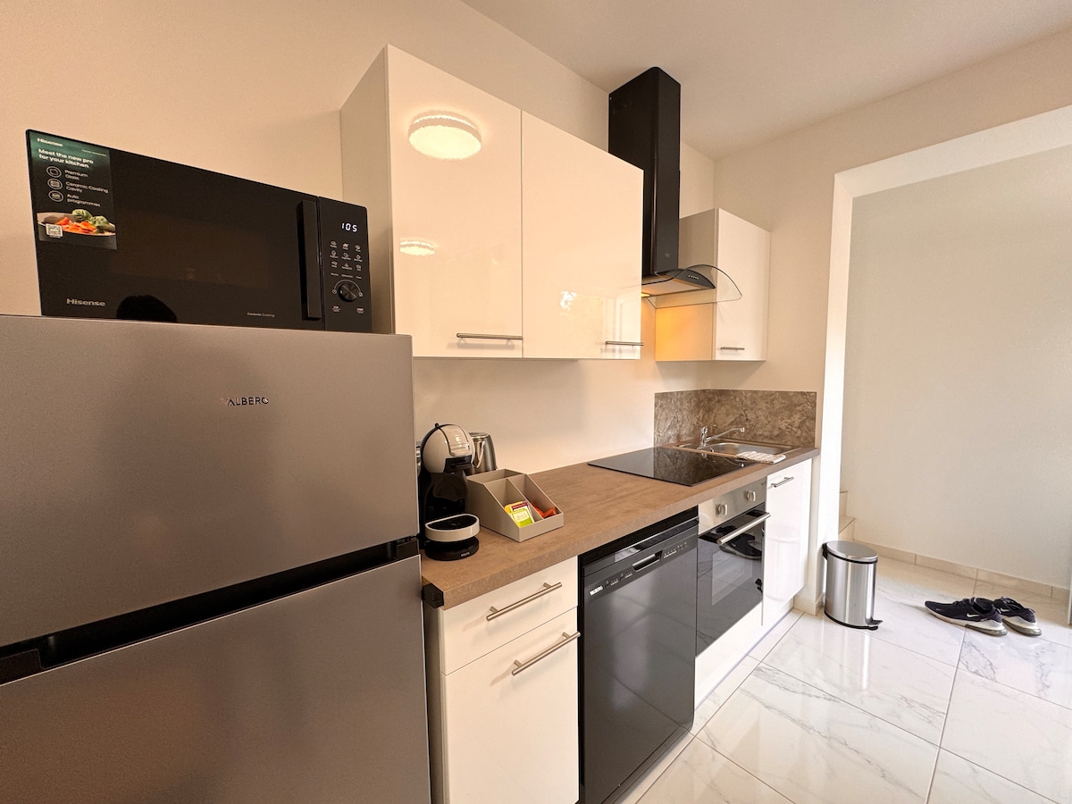 Şehir merkezinde daire, tüm ticaret merkezlerine yakın, yürüyerek her şeyi yapabilirsiniz, restoranlar, geziler. 70 m2 çok aydınlık, sakin bina. Çiftler, çocuklu aileler, iş için seyahat edenler için mükemmeldir. Yatak odası 1: Büyük çift kişilik yatak/depolama. Yatak odası 2: 2 tek kişilik yatak/depolama. Büyük oturma odası/mutfak/banyo/tuvalet. Kaleye 5 dakika yürüme mesafesinde. INSEAD'a 10 dakika. Park yeri 1 dakika. Grand Parquet arabayla 5 dk. İstasyona gitmek için otobüs durağı, Paris'e gitmek için trene binin.