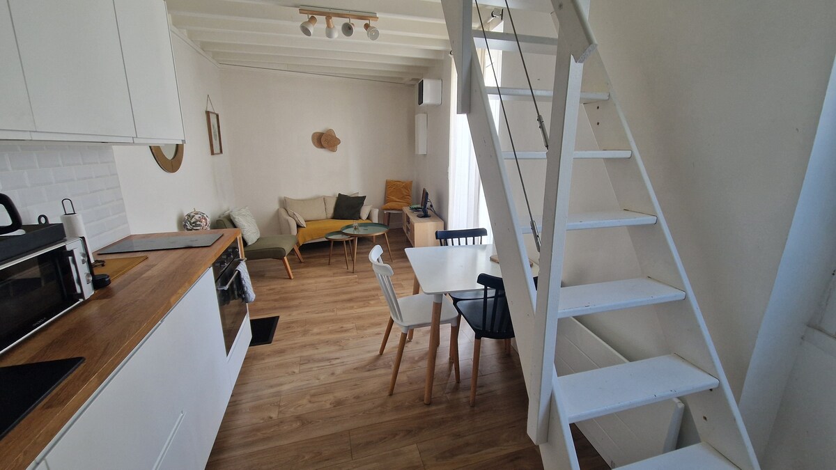 2021 yılında tamamen döşenen ve 2025 yılında yeniden dekore edilen 45 m2'lik güzel bir daire. Vertou'nun güney bölgesinde, üzüm bağlarının karşısında ve Pôle Sud alışveriş merkezine 5 dakika mesafede. Evden yürüyüşlere doğrudan erişim. Nantes'ın merkezine arabayla 20 dakika mesafede. Daire, özel park yeri ile evimize bitişiktir. Hafta içi çalışmak veya hafta sonu kaçamaklarınız için idealdir! Sessiz bir semt, sadece arabayla erişilebilir.