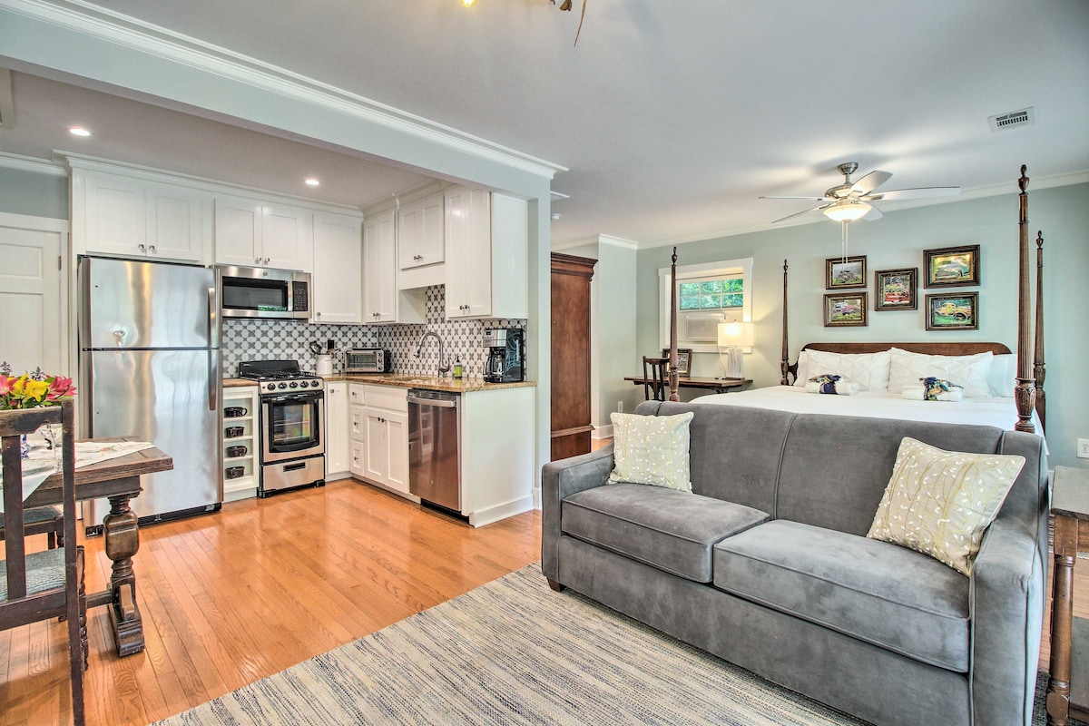 Güneydoğu Georgia'daki bir sonraki inzivanız bu 1 banyolu Savannah stüdyosunda sizi bekliyor! Bu kullanışlı kiralık tatil evinde akıllı TV, iyi donanımlı bir mutfak ve bölgenin en popüler turistik yerlerine erişim bulunuyor. Sabah kahvenizi ortak verandada yudumlayın, ardından Forsyth Parkı'nda huzurlu bir yürüyüşün tadını çıkarın! Sanat tutkunları Savannah Afrika Sanat Müzesi'ni veya SCAD Sanat Müzesi'ni ziyaret edebilir. Açlığınız bastırdığında, City Market'ta alışveriş yapın ve yerel yemeklerin tadını çıkarın. Size kalmış!