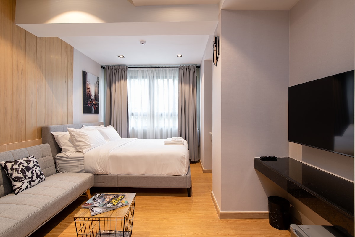 ☆GalileOasis Butik Otel Bangkok☆Airbnb Süper Ev Sahibi☆ Bu sanatsal alan, Bangkok şehir merkezinin yeşil bir vahasında modern ve vintage tasarımı harmanlıyor. Binanın üçüncü katında yer alan bu mekân, her biri benzer bir temaya, dekorasyona ve yerleşime sahip 3 minimalist üniteye (231 -3) sahiptir ve uyumlu ama biraz çeşitli bir tasarım sunar. KONUM: BTS Ulusal Stadyumu, Siam, Ratchathewi ve Havaalanı Bağlantısına 1,5 km (5 dakikalık sürüş). Jim Thompson Müzesi, Siam Paragon ve daha fazlasına yürüme mesafesindedir.