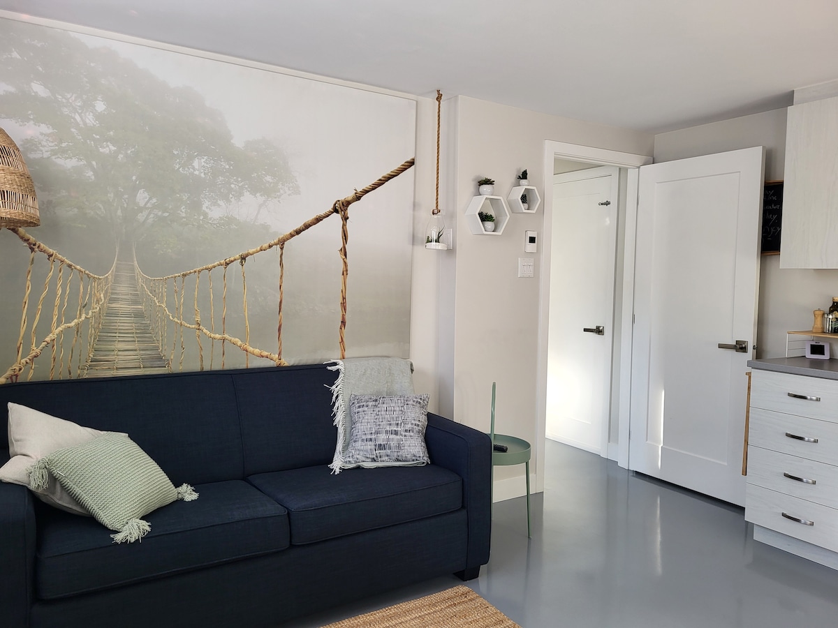 2020 yılında tamamen yenilenen daire size şunları sunuyor: Chaudière Nehri manzaralı özel bir yatak odası, tam donanımlı bir mutfak, yüksek masalı bir yemek alanı, bir çalışma masası, bir duş odası ve konforlu bir oturma alanı. Aynı katta, ortak ve ücretsiz bir çamaşırhaneye erişiminiz olacaktır. Birçok restoran ve mağazaya sadece birkaç adım mesafede olacaksınız. Ayrıca, bisiklet yolu doğrudan konutun önünden geçmektedir.