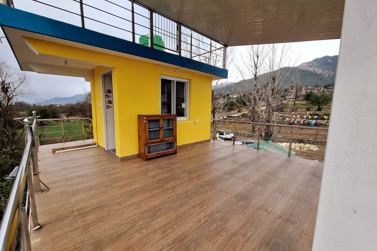 Aile ve arkadaş grubu için mükemmel uzun süreli geçit veya WFH istasyonu Çarpıcı dağ manzarasına sahip pirinç çiftliklerine bakan sakin bir konaklama, turistlerin koşuşturmasından uzak ve yine de uçan şehir Bir'e (2 km) yakın bir konumda. Banyo (bağlı değil) köy tarzı hissi ile modern olanakların bir karışımıdır, ayrı bir kabinde duş, gayzer ve batı tarzı oturak vardır. Mutfak, bahçeden taze sebze temini ve temel malzeme temini ile tam işlevseldir.