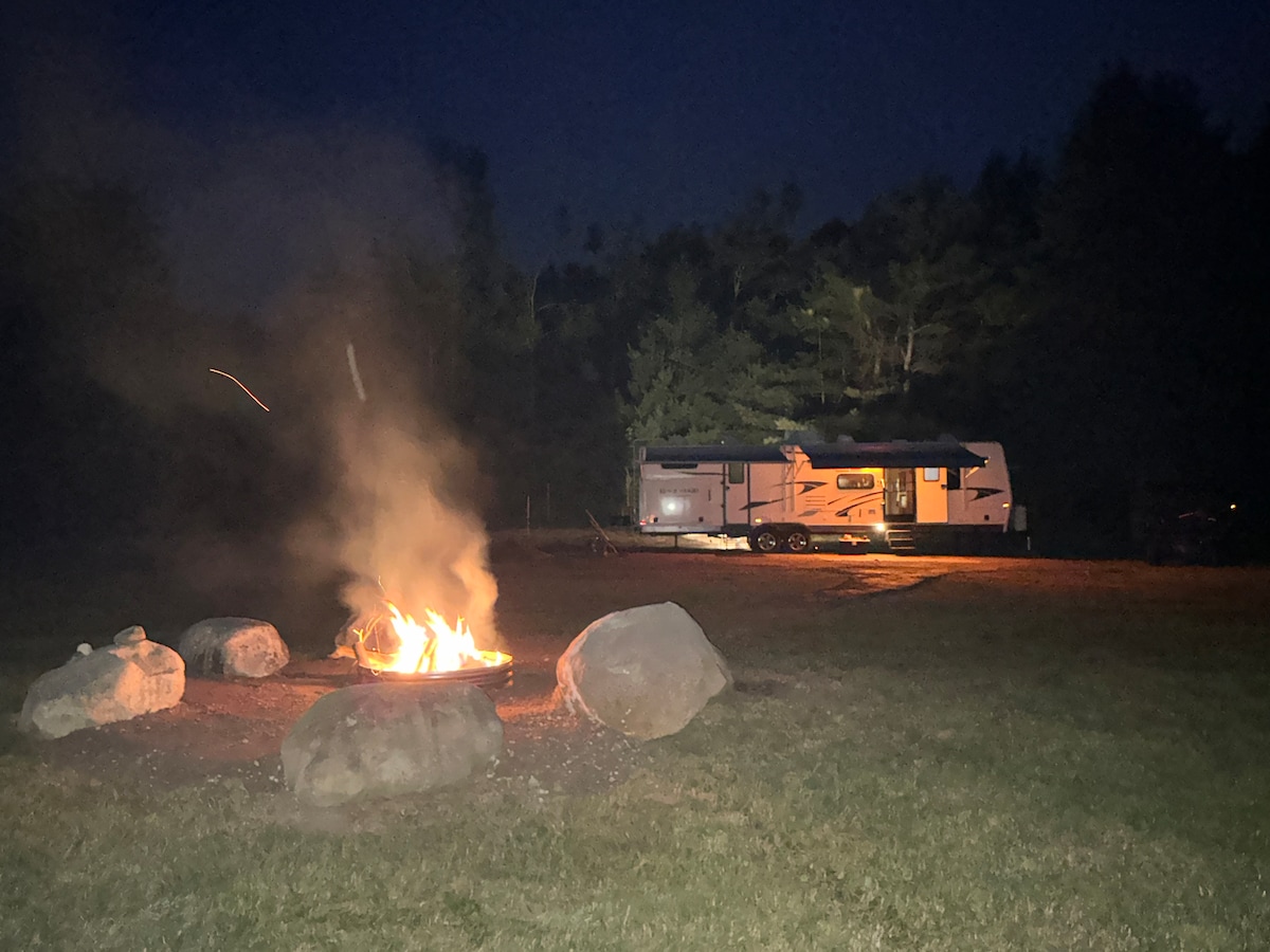 Enjoy privacy and seclusion on a large private lot with large pines. This very unique campsite offers our luxurious Rockwood Signature camper on a stone pad with full utility hook up and fire pit. The property is very close to Mullet Lake swimming access at Boy Scout Park and public boat launch less than one mile away. Plenty of space to park and space for large trucks with trailers or boats. The area is also fenced with a large gate to keep your pets and rascals rounded up.
